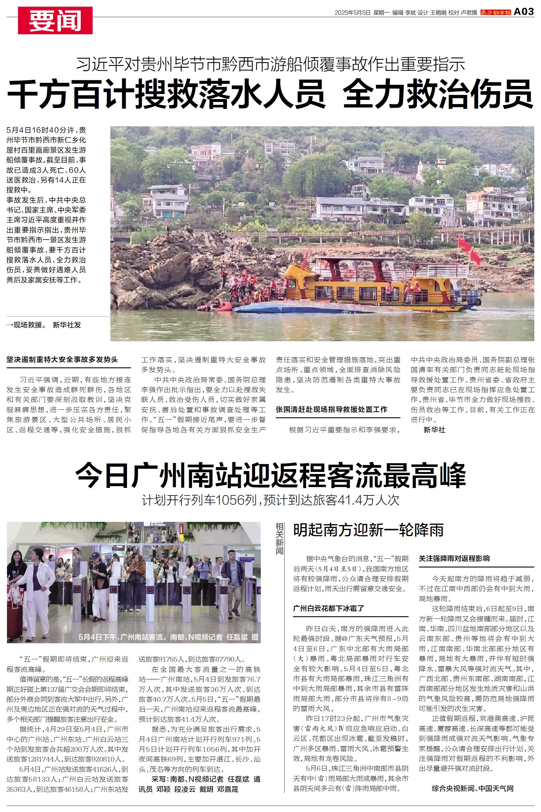 “五一”假期即将结束,广州迎来返程客流高峰。