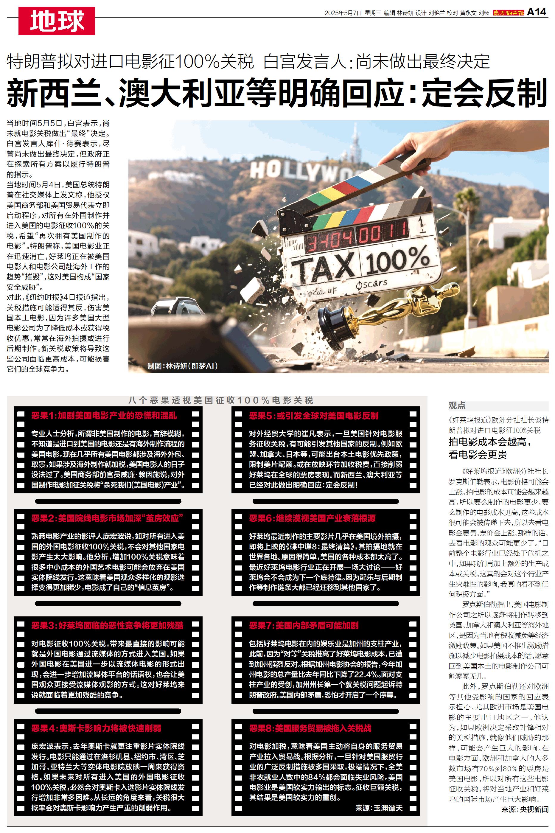 当地时间5月5日,白宫表示,尚未就电影关税做出“最终”决定。白宫发言人库什·德赛表示,尽管尚未做出最终决定,但政府正在探索所有方案以履行特朗普的指示。