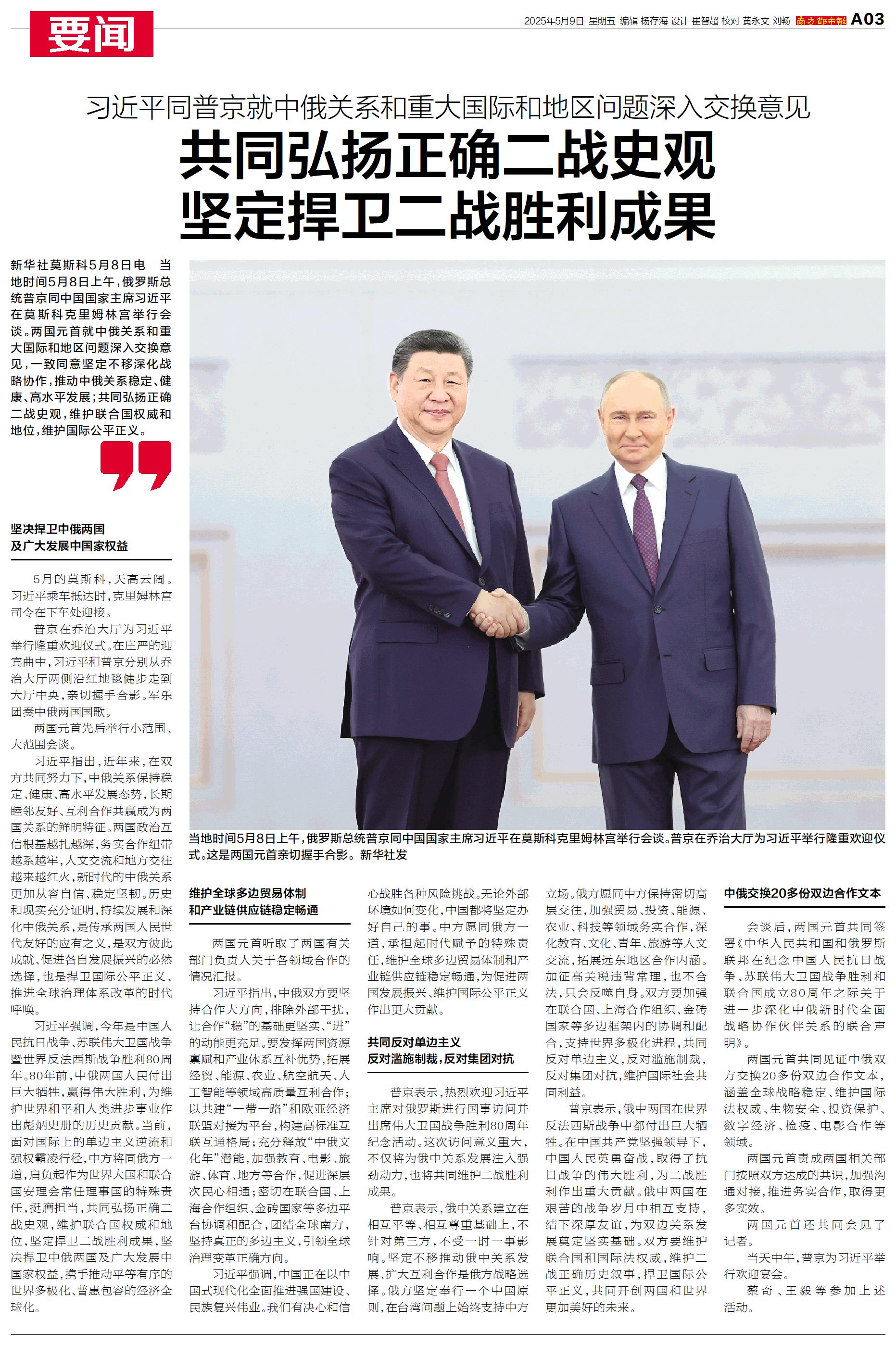 共同弘扬正确二战史观 坚定捍卫二战胜利成果