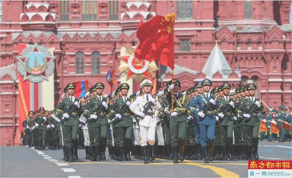 5月的莫斯科,绿意盎然,鲜花盛开,胜利日旗帜迎风招展,恢宏的红场一片庄严的盛典气氛。