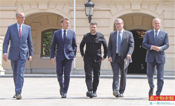 5月10日,乌克兰基辅,德国、法国、波兰和英国领导人发表联合声明,承诺增加对乌克兰的支持。 IC供图