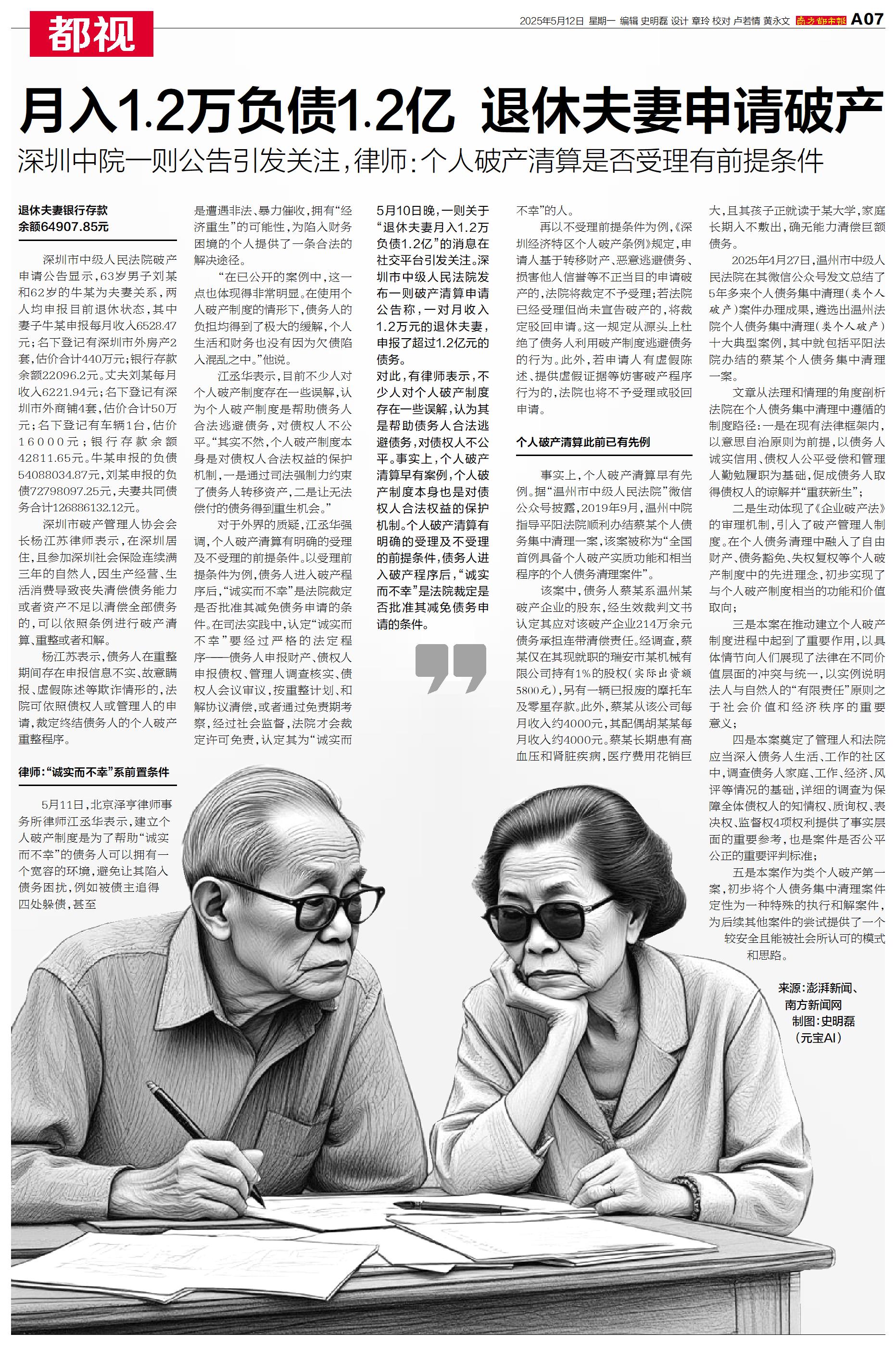 5月10日晚,一则关于“退休夫妻月入1.2万负债1.2亿”的消息在社交平台引发关注。