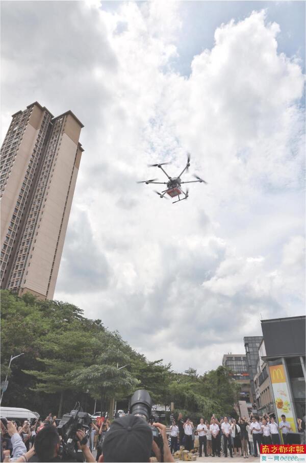 政策首次将低空经济、商业航天等战新产业纳入重点支持目录。这是2024年在广州出现的全国首单无人机配送高考录取通知书。南都资料图