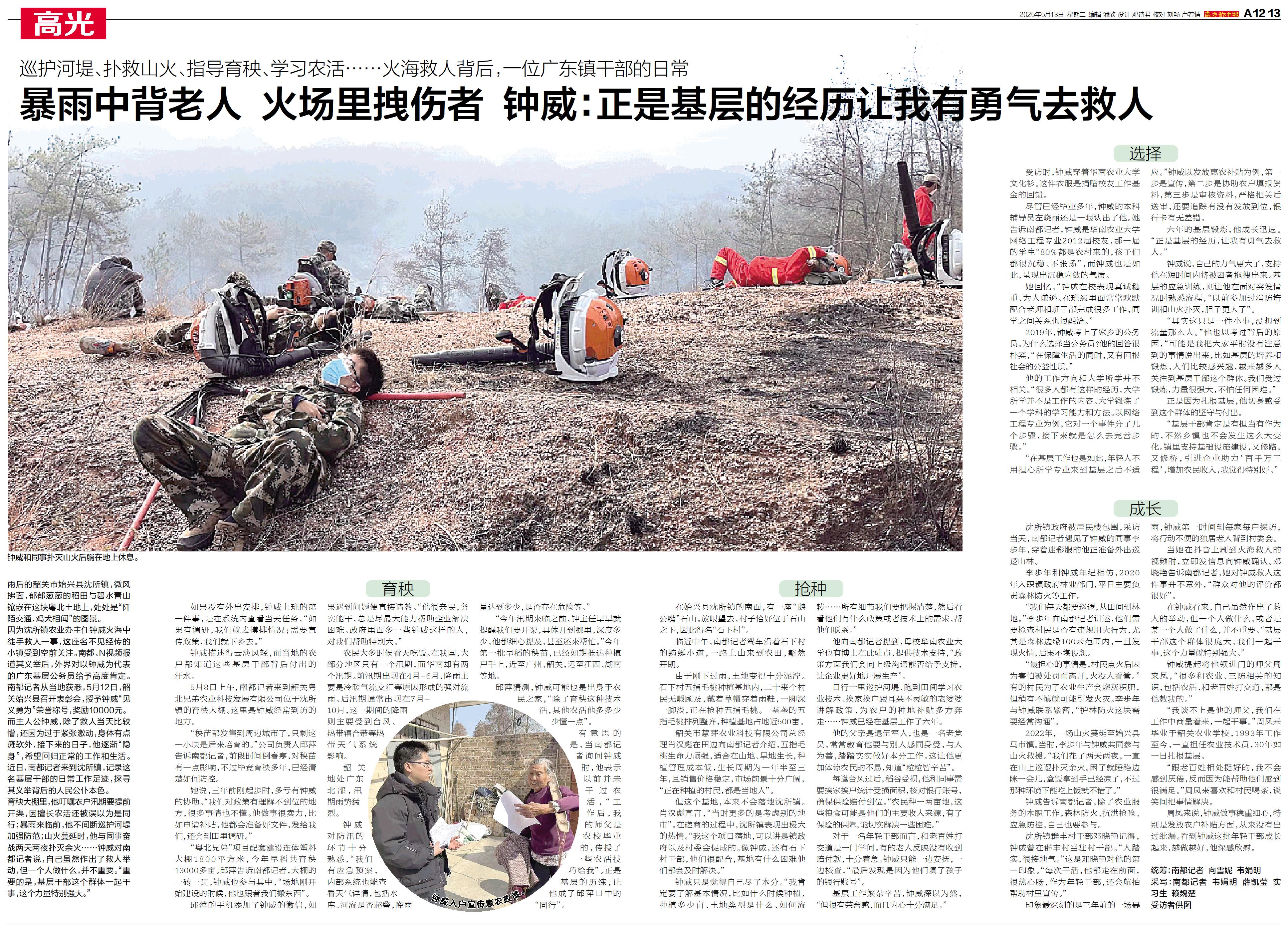 暴雨中背老人 火场里拽伤者 钟威:正是基层的经历让我有勇气去救人