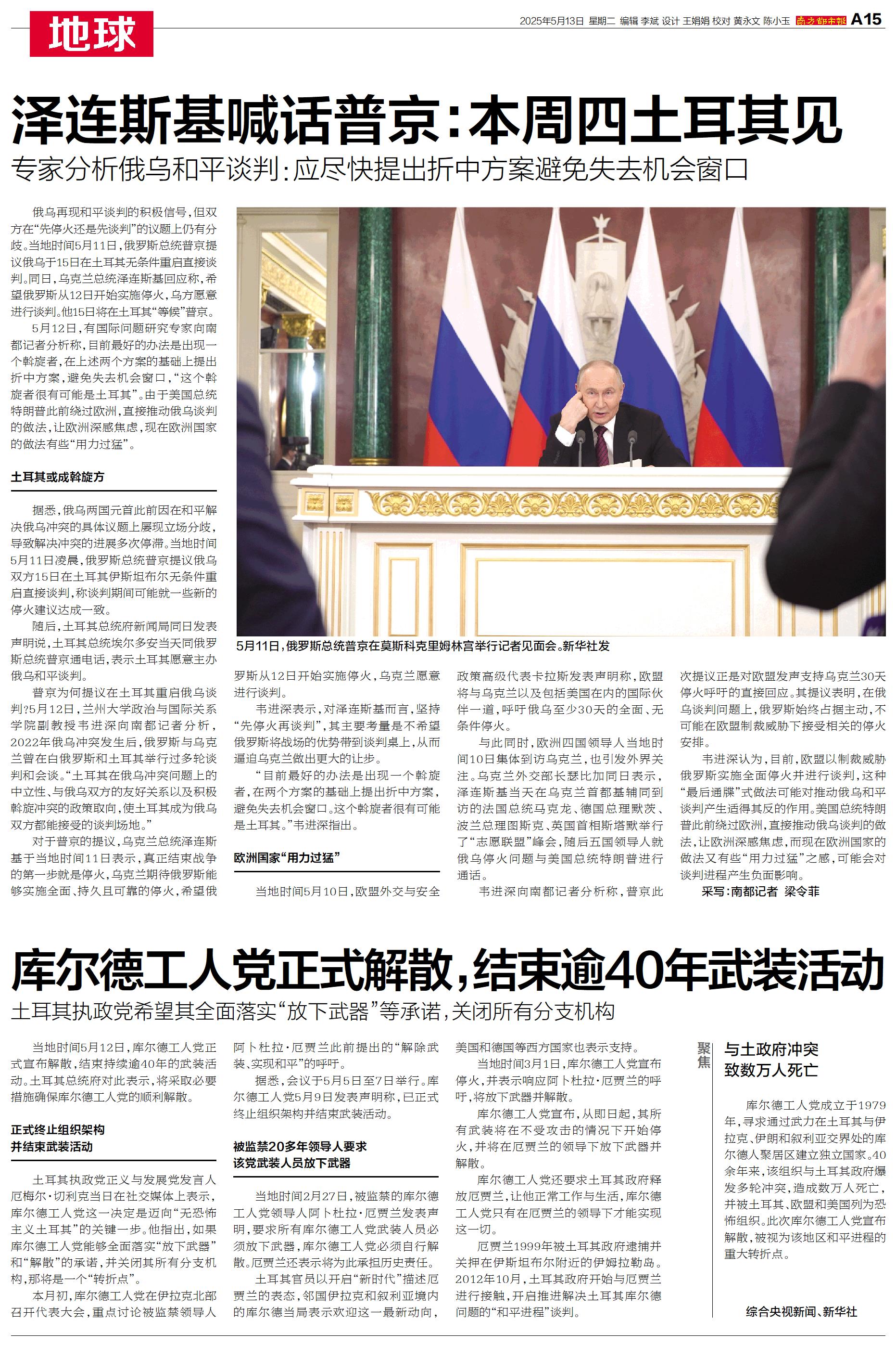 当地时间5月12日,库尔德工人党正式宣布解散,结束持续逾40年的武装活动。土耳其总统府对此表示,将采取必要措施确保库尔德工人党的顺利解散。