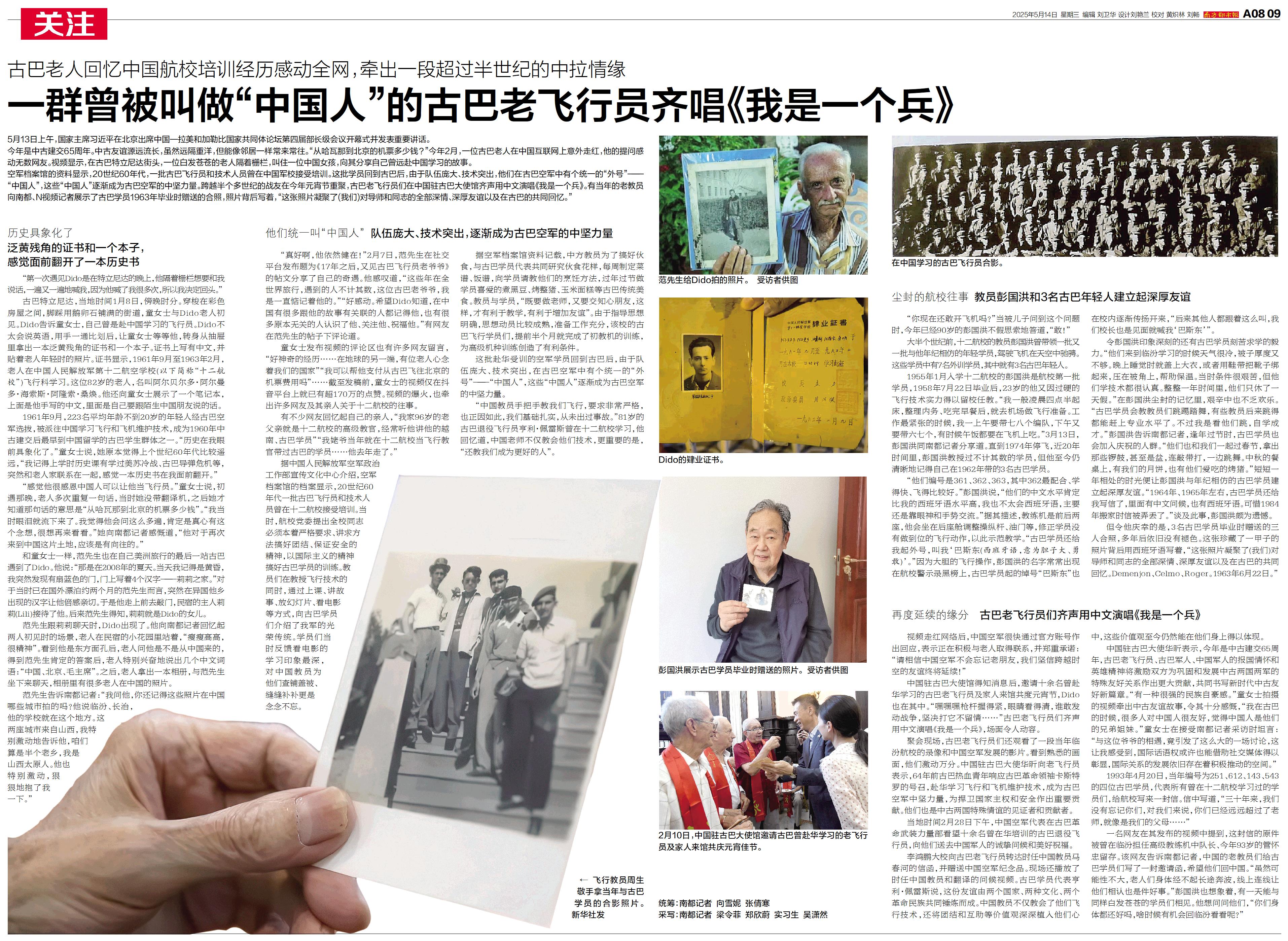 一群曾被叫做“中国人”的古巴老飞行员齐唱《我是一个兵》