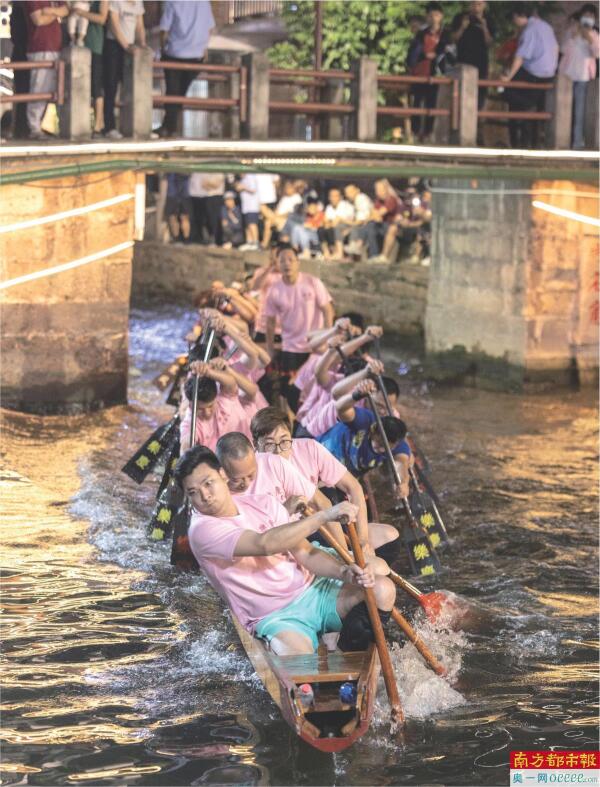 5月12日晚,多条龙船轮番上阵,“扒夜龙”是叠滘人的传统仪式,也是村与村之间“谁更威水”的对决。据悉,5月31日起叠滘龙船大赛(正赛)将开启。 南都记者 徐杰 摄