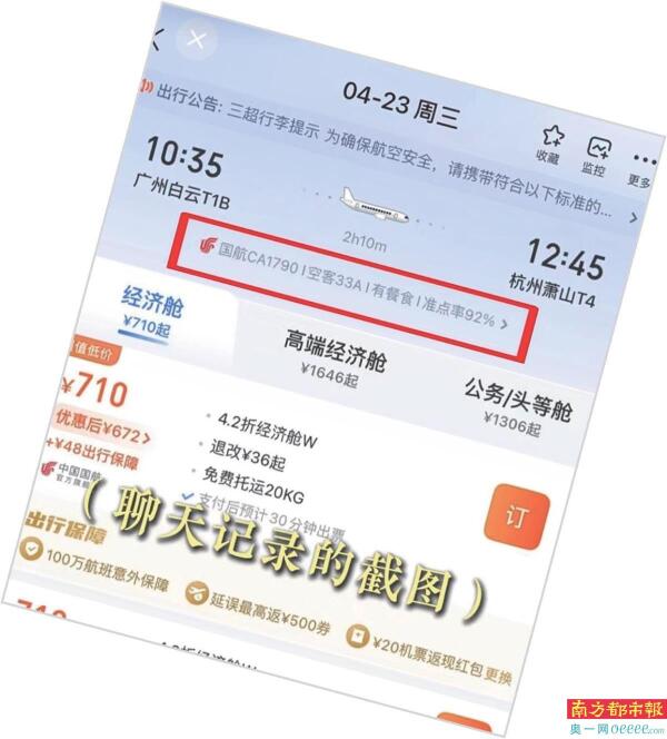 南都记者查询国航官网获悉,4月23日CA1790的实际执飞机型为空客A321。