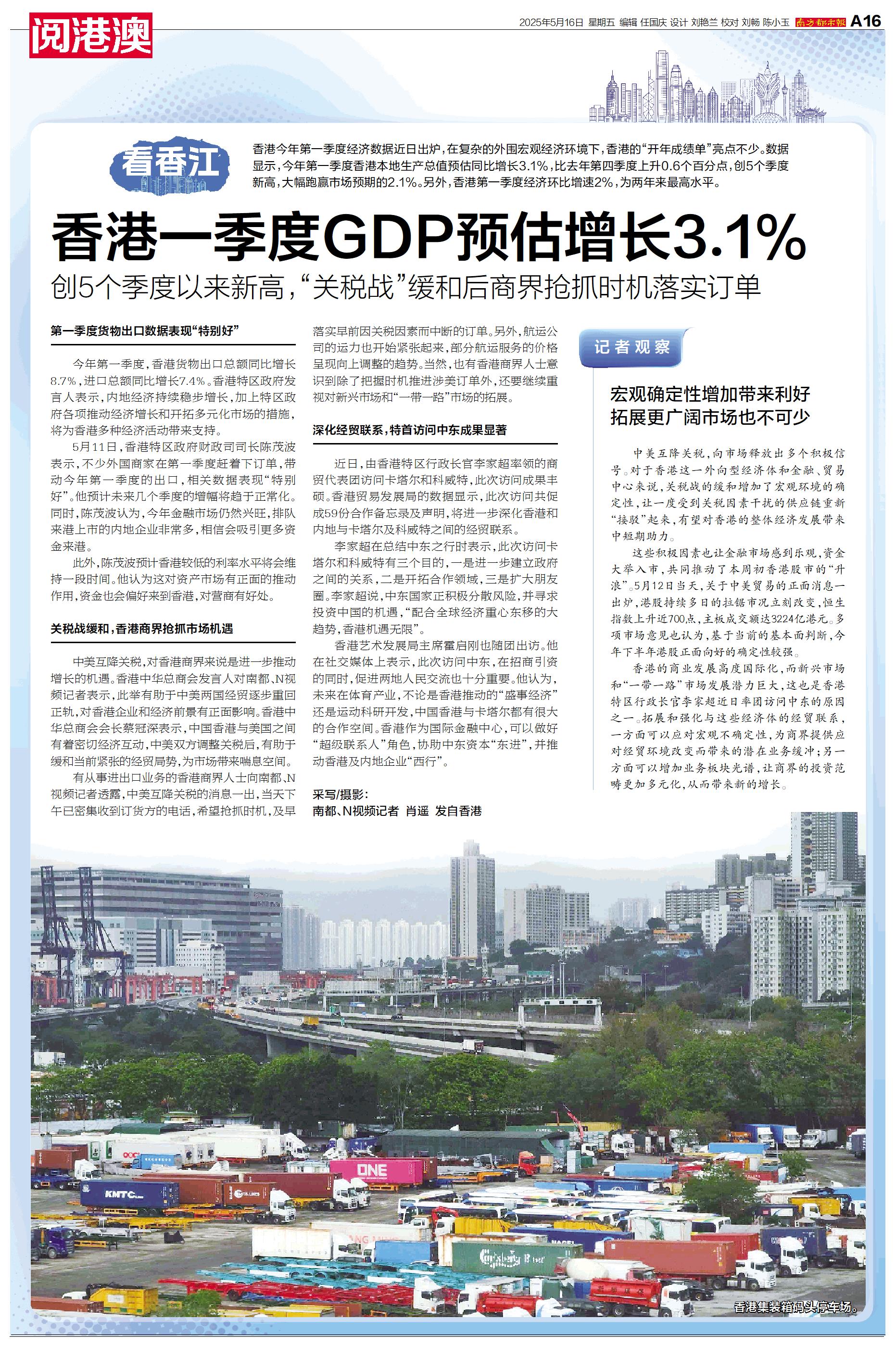 香港今年第一季度经济数据近日出炉,在复杂的外围宏观经济环境下,香港的“开年成绩单”亮点不少。