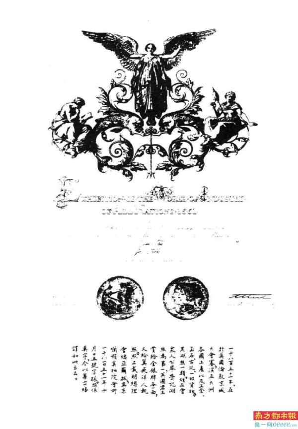 在英国维多利亚女王170余年前赠予“中国世博第一人”、徐希曾的先祖徐荣村的“翼飞洋人”奖状上,经典西方神话形象、腋生双翼的“天使”正高举双臂。