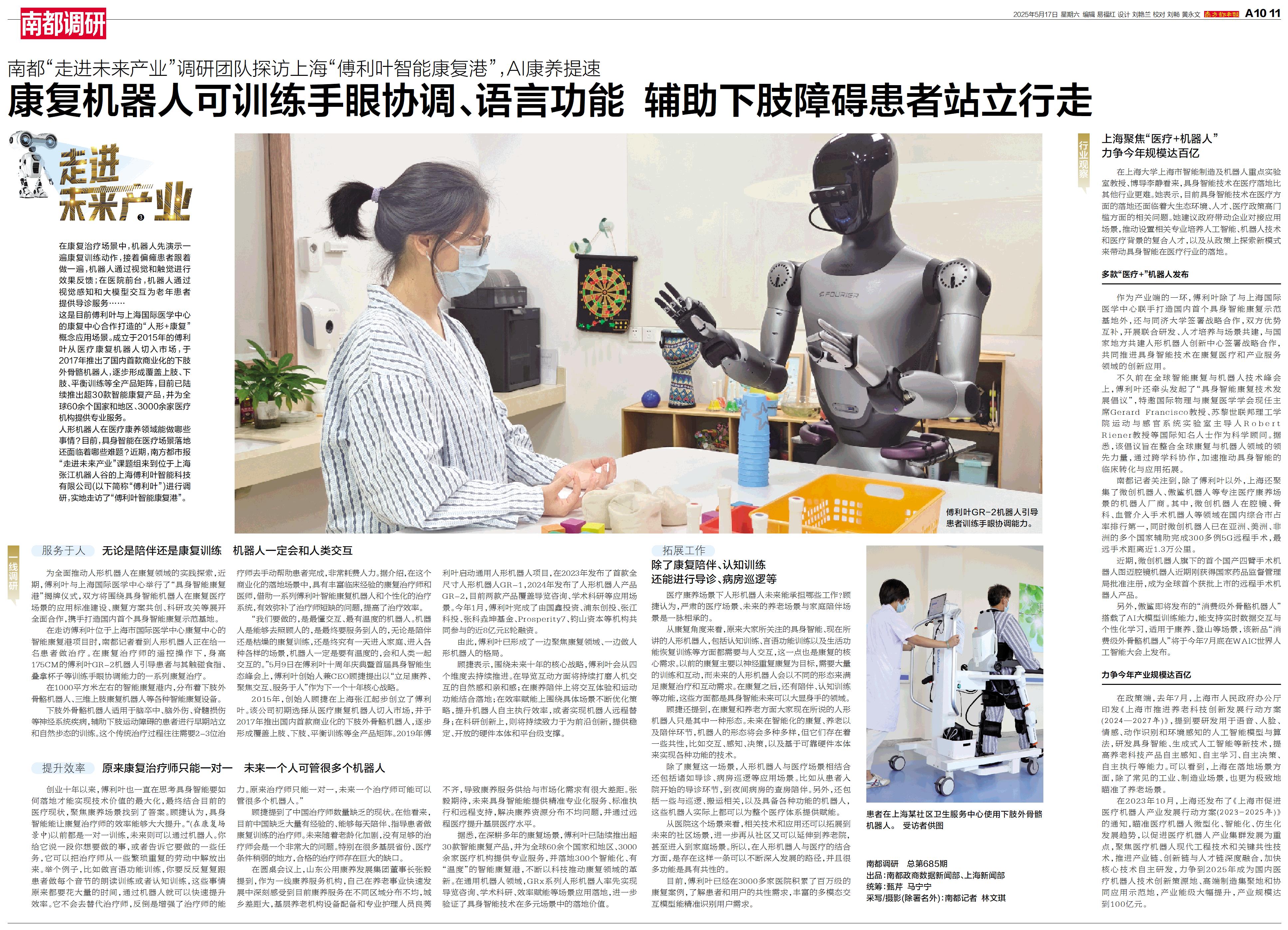 近期,南方都市报“走进未来产业”课题组来到位于上海张江机器人谷的上海傅利叶智能科技有限公司(以下简称“傅利叶”)进行调研,实地走访了“傅利叶智能康复港”。
