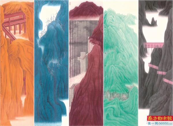 “五色·万象——中国传统色现代性转译研究展”正在广州艺术博物院举行,图为刘文东作品《山河入我怀》。
