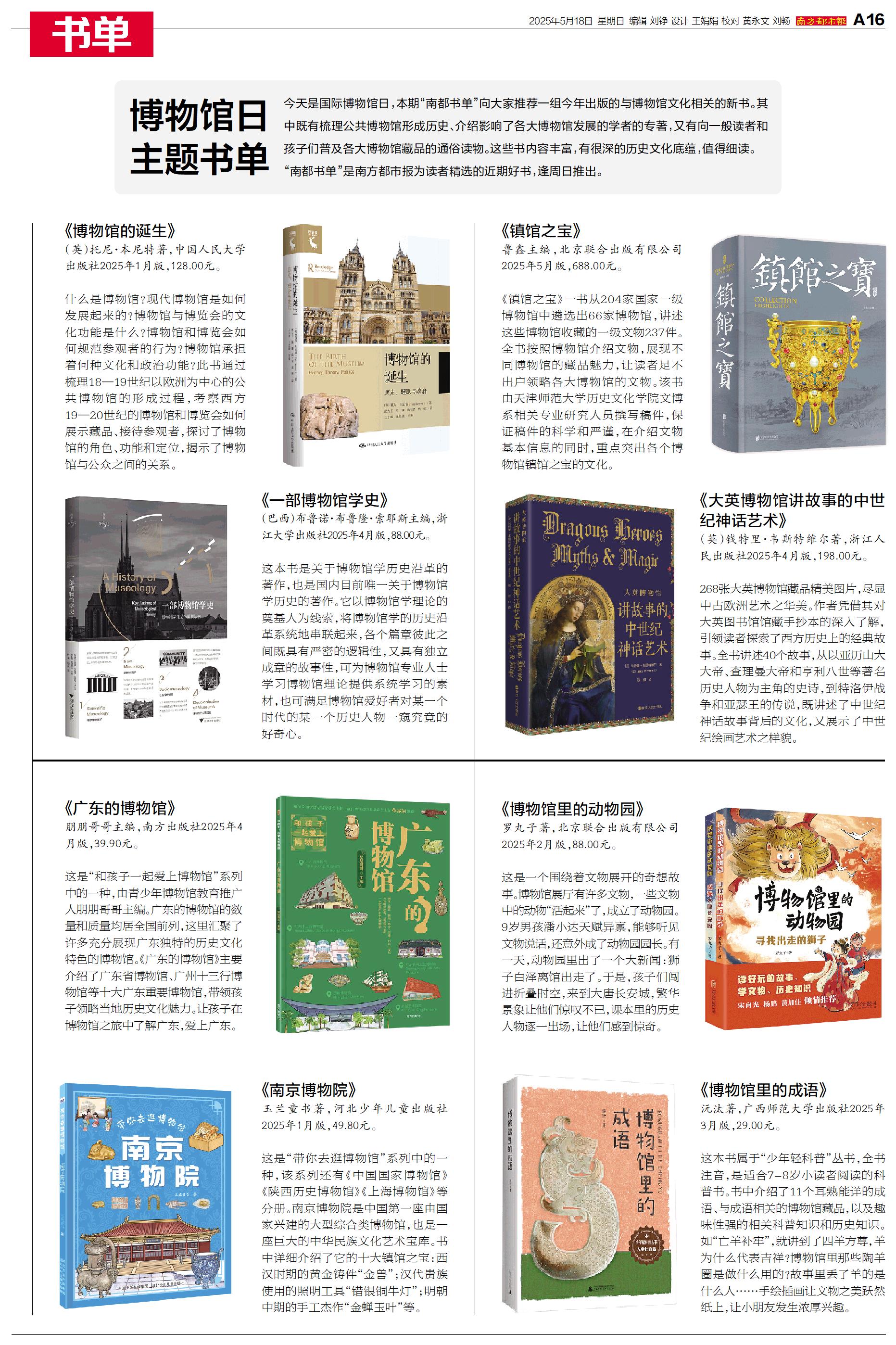 今天是国际博物馆日,本期“南都书单”向大家推荐一组今年出版的与博物馆文化相关的新书。其中既有梳理公共博物馆形成历史、介绍影响了各大博物馆发展的学者的专著,又有向一般读者和孩子们普及各大博物馆藏品的通俗读物。这些书内容丰富,有很深的历史文化底蕴,值得细读。