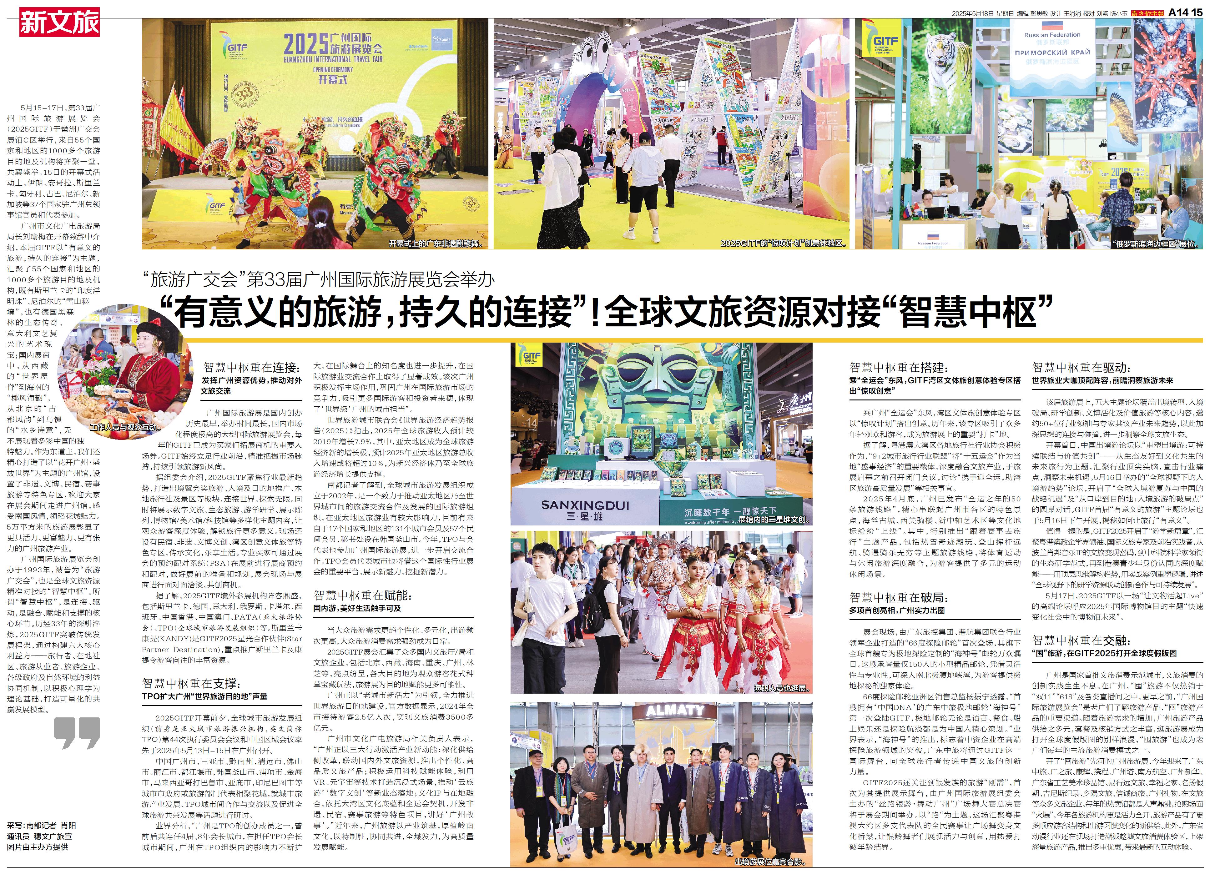5月15-17日,第33届广州国际旅游展览会(2025GITF)于琶洲广交会展馆C区举行,来自55个国家和地区的1000多个旅游目的地及机构将齐聚一堂,共襄盛举。