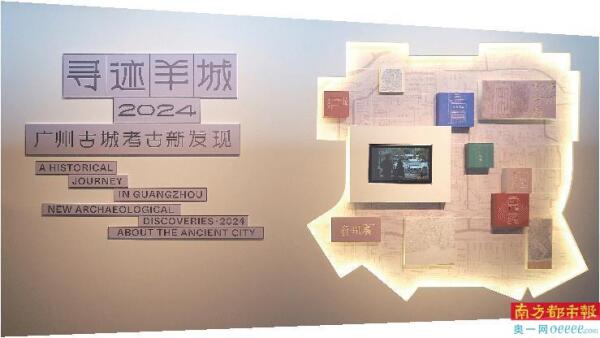 在“寻迹羊城2024”展览主视觉——大写的“城”字和广州古城地图中,还嵌入了一块显示屏,持续播放着今日的广州城景。人来人往的公园前、西门口、光明广场……其实都曾有过城墙。考古工作者们就是在这些地方展开发掘,追溯脚下这片土地的历史。