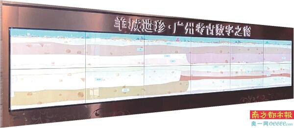 位于博物馆二层的“羊城遗珍·广州考古数字之窗”(也叫“数字文物墙”),则是他们今年推出的又一亮点成果。超大屏幕展示系统,允许多个用户在不同区域时操作,用指尖触屏展开广州的历史画卷。