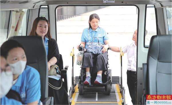 来自香港的残障人士,正在通过特制升降平台进入福祉车。 受访者供图