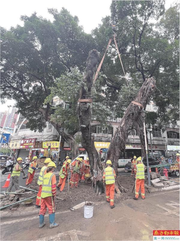 佛山禅城数十年老榕树倒伏