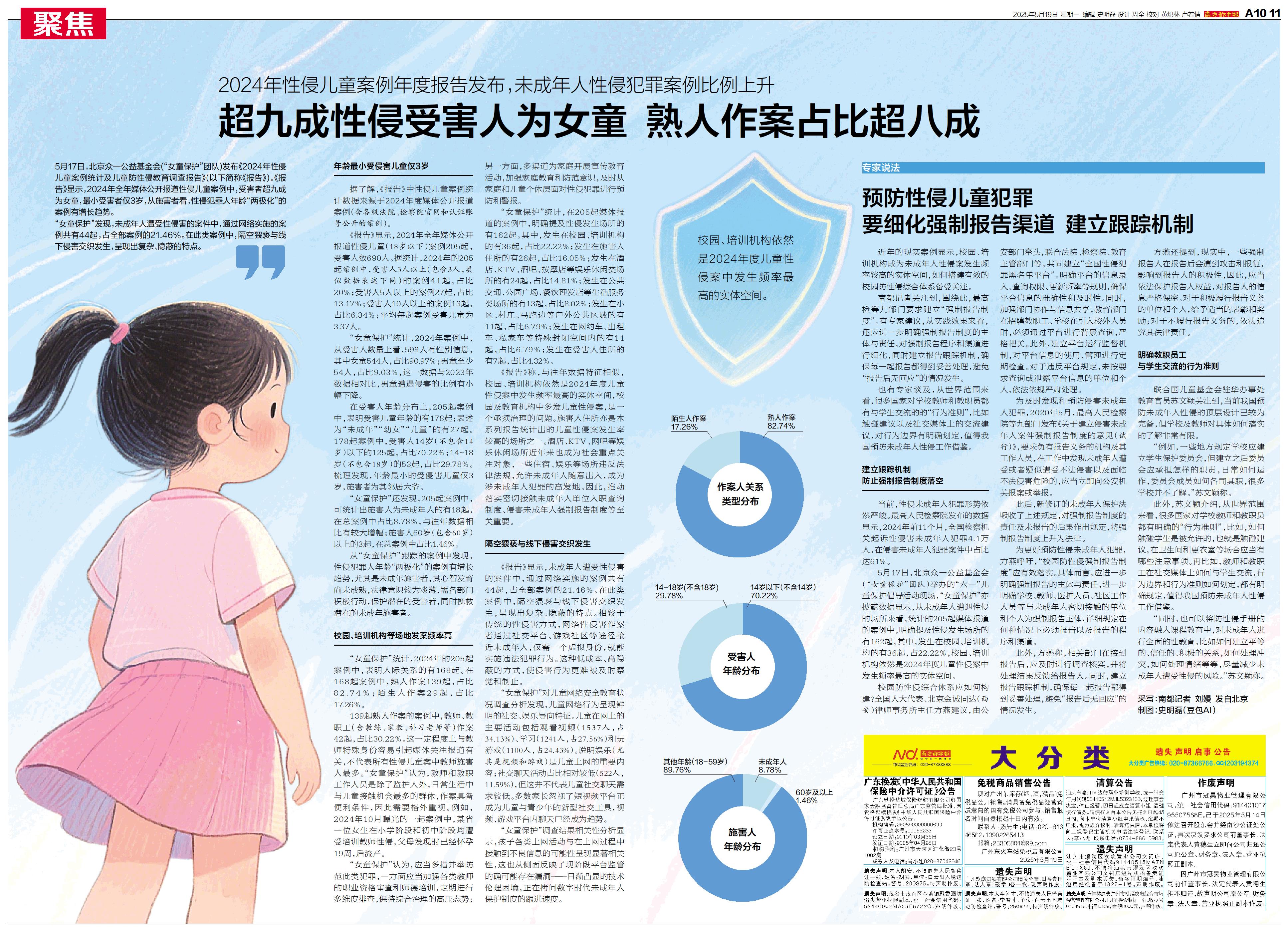 5月17日,北京众一公益基金会(“女童保护”团队)发布《2024年性侵儿童案例统计及儿童防性侵教育调查报告》(以下简称《报告》)。