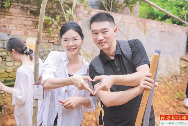 在5·20来临之际,青年佳偶们在广东绿美青年林种下同心树。 通讯员供图
