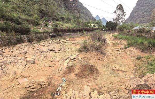 4月21日,广西马山县古零镇羊山村的乔老河因上游来水减少出现断流。 新华社发