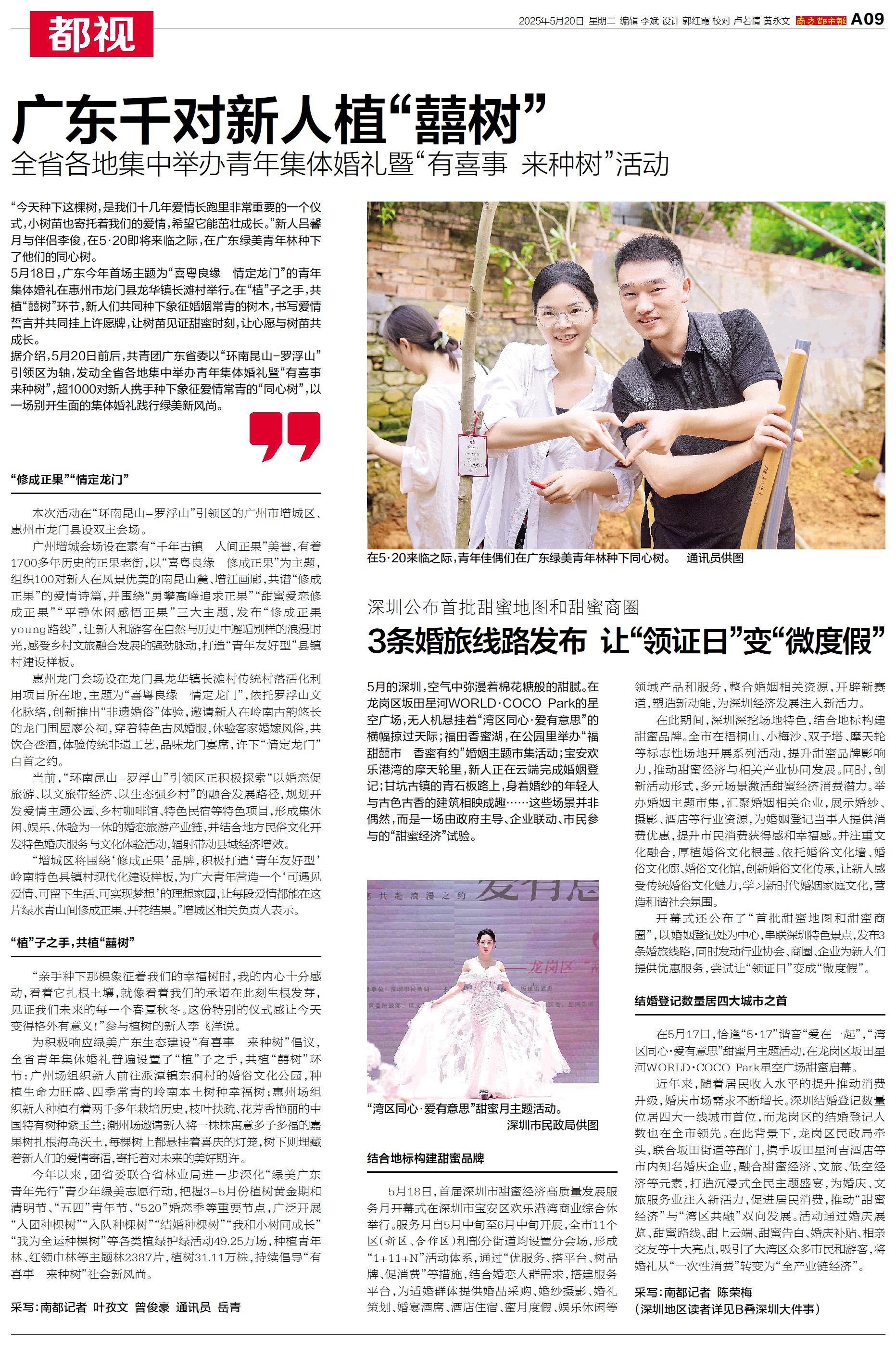 新人吕馨月与伴侣李俊,在5·20即将来临之际,在广东绿美青年林种下了他们的同心树。