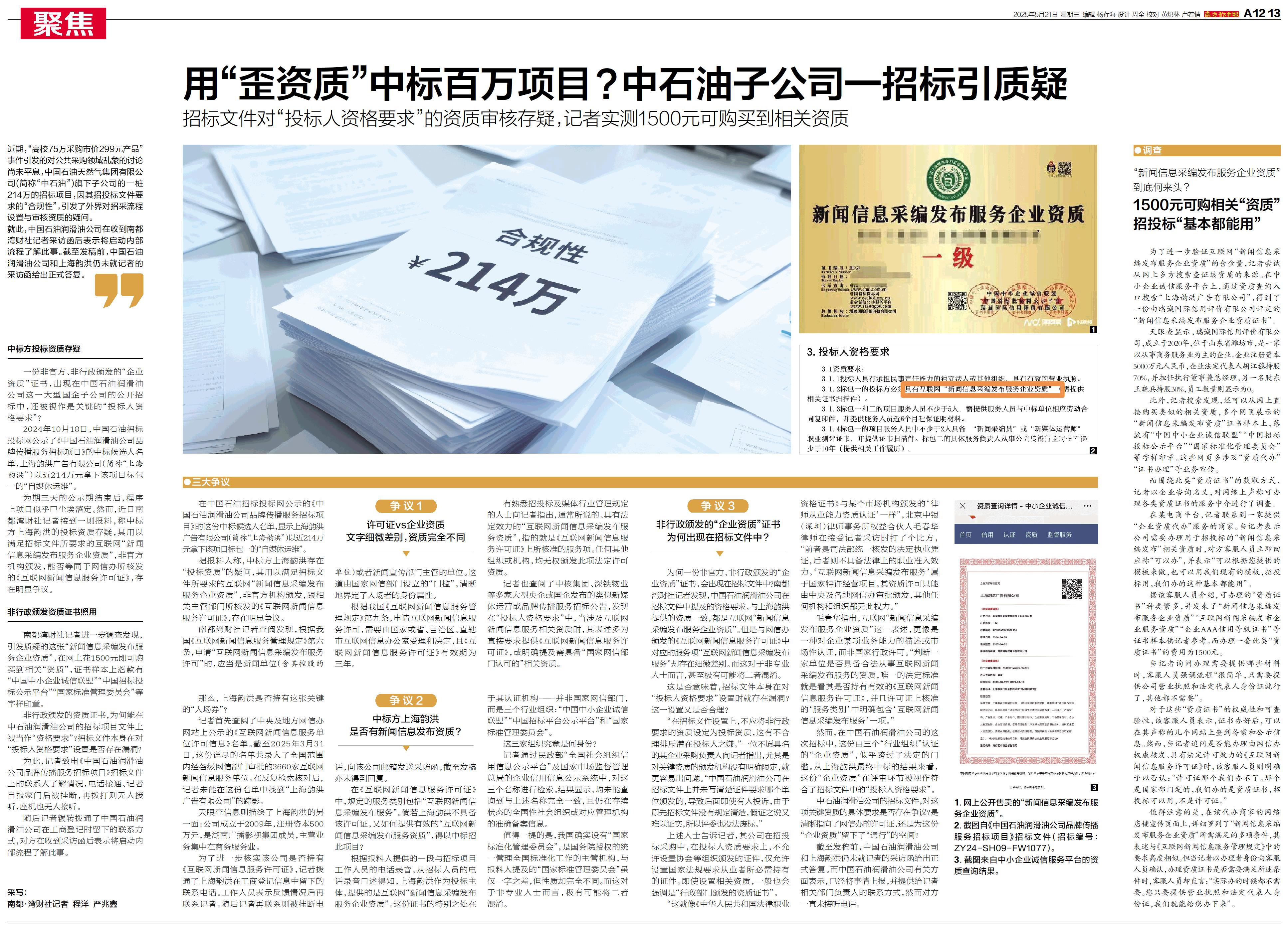 “新闻信息采编发布服务企业资质”到底何来头?1500元可购相关“资质”招投标“基本都能用”