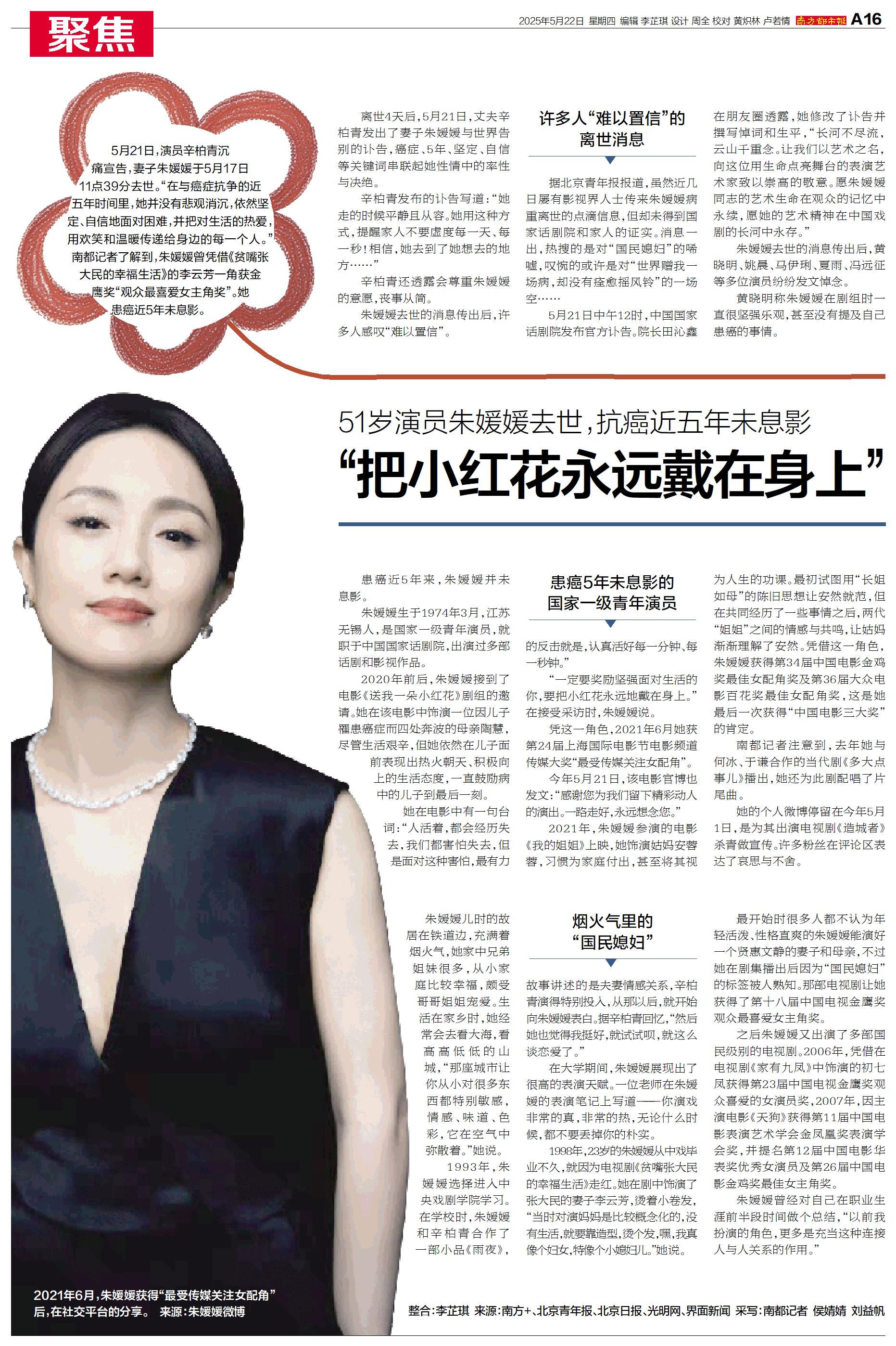 5月21日,演员辛柏青沉痛宣告,妻子朱媛媛于5月17日11点39分去世。