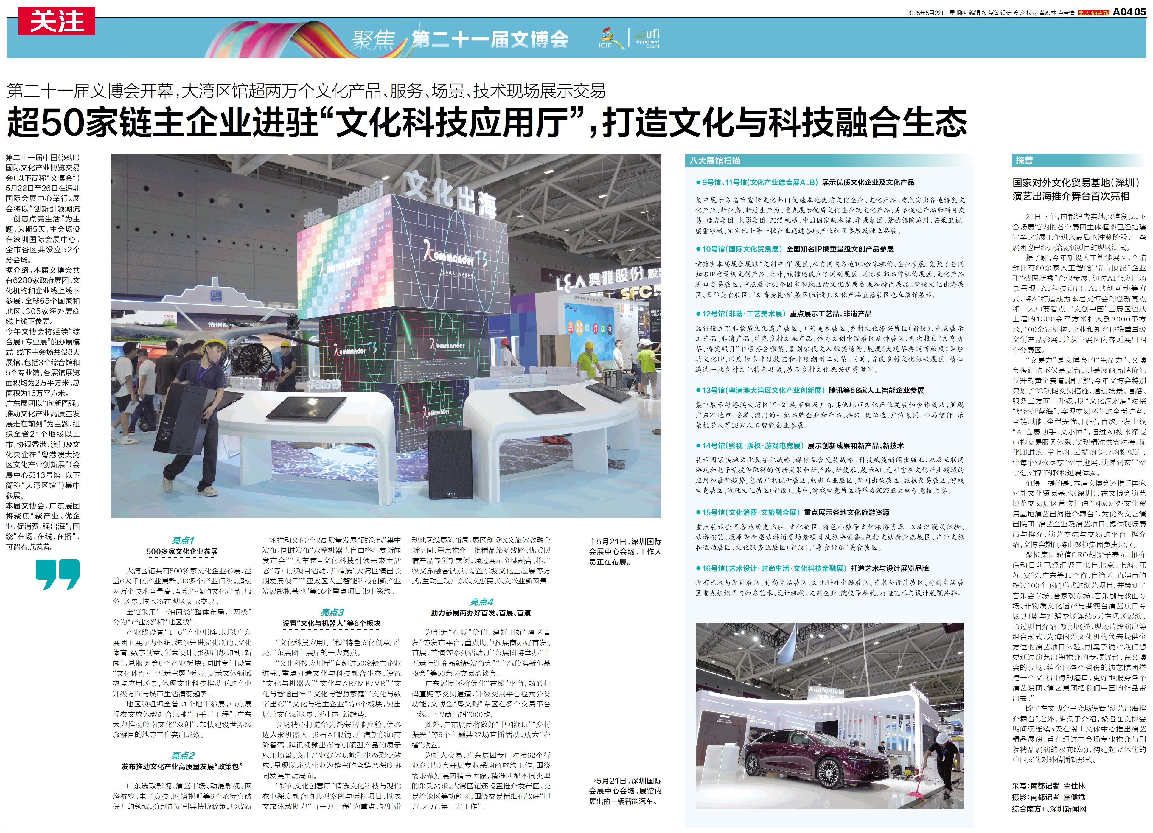 第二十一届中国(深圳)国际文化产业博览交易会(以下简称“文博会”)5月22日至26日在深圳国际会展中心举行。