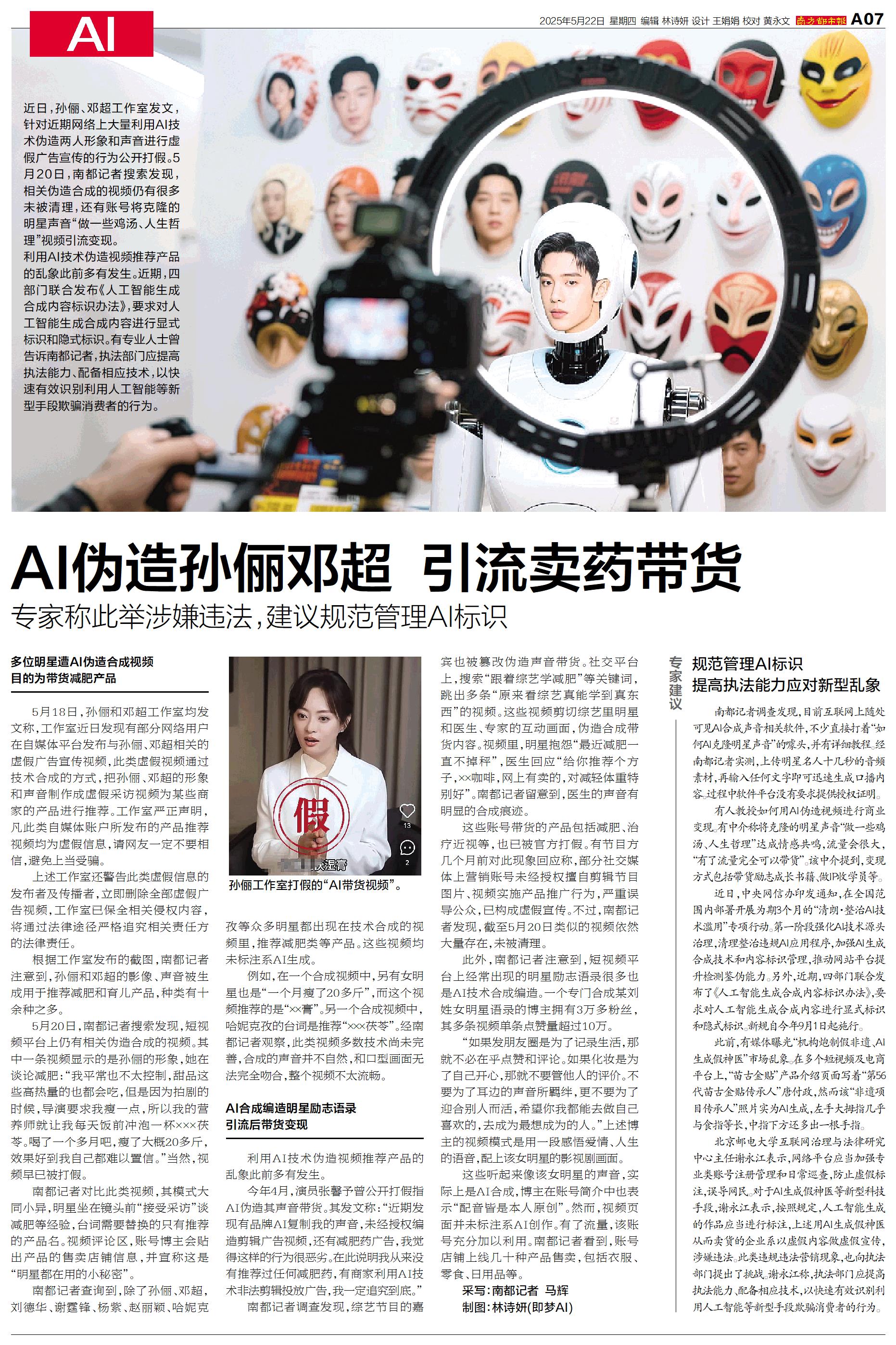 近日,孙俪、邓超工作室发文,针对近期网络上大量利用AI技术伪造两人形象和声音进行虚假广告宣传的行为公开打假。