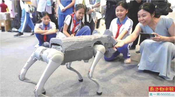 13号展馆内,展出一只改装过的机器狗,吸引不少市民与其互动。