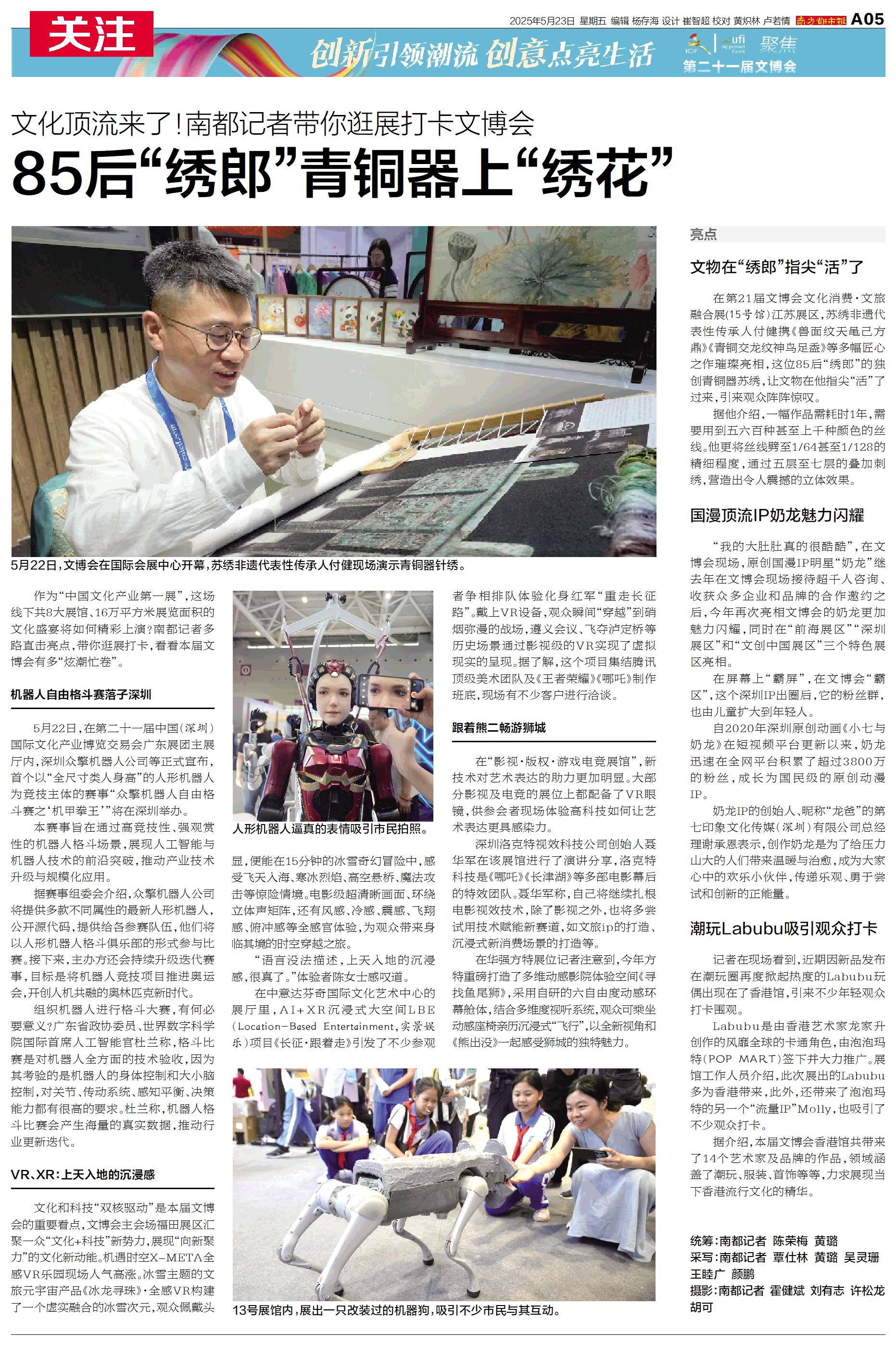 作为“中国文化产业第一展”,这场线下共8大展馆、16万平方米展览面积的文化盛宴将如何精彩上演?南都记者多路直击亮点,带你逛展打卡,看看本届文博会有多“炫潮忙卷”。