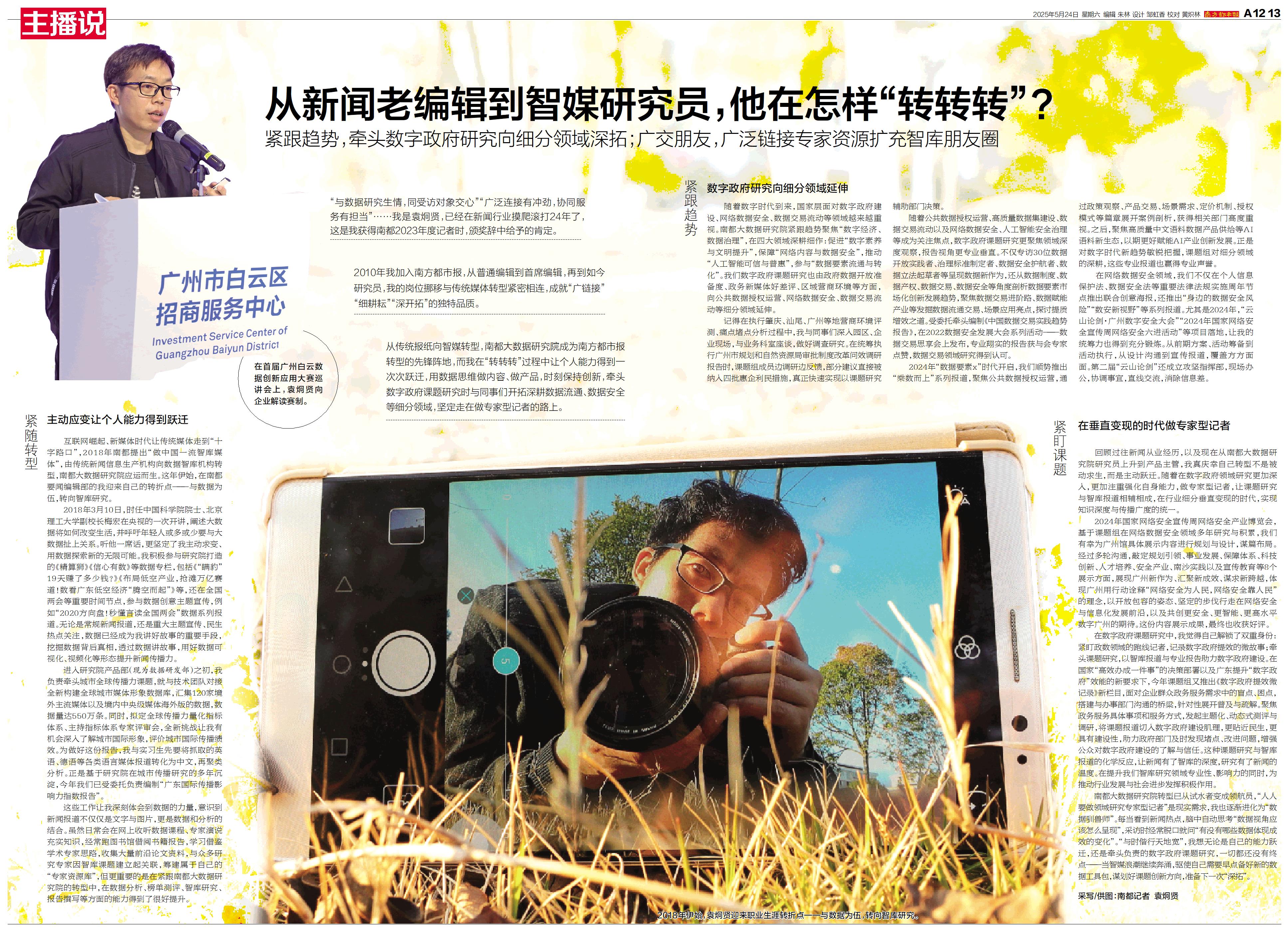从传统报纸向智媒转型,南都大数据研究院成为南方都市报转型的先锋阵地,而我在“转转转”过程中让个人能力得到一次次跃迁,用数据思维做内容、做产品,时刻保持创新,牵头数字政府课题研究时与同事们开拓深耕数据流通、数据安全等细分领域,坚定走在做专家型记者的路上。
