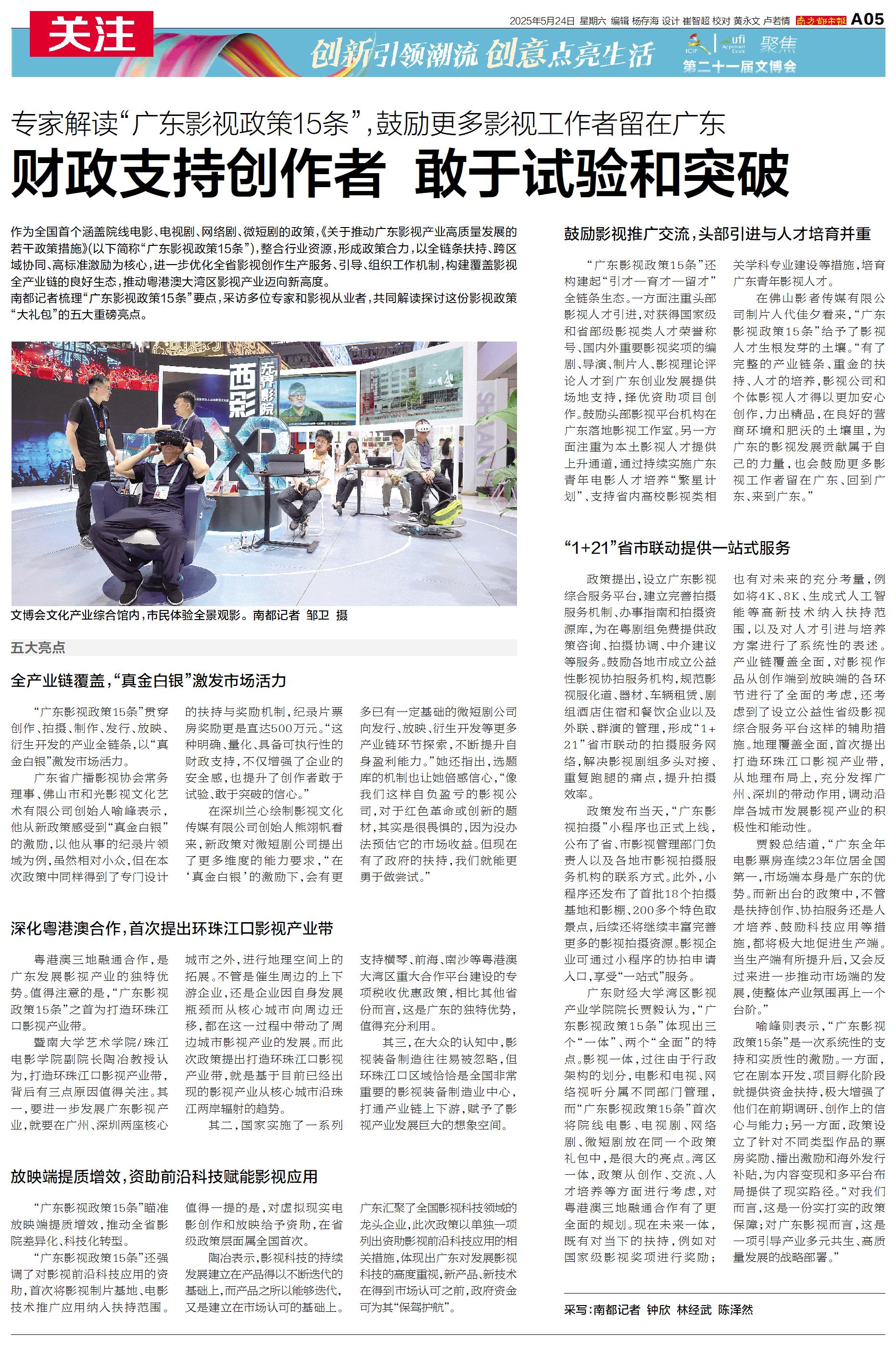 南都记者梳理“广东影视政策15条”要点,采访多位专家和影视从业者,共同解读探讨这份影视政策“大礼包”的五大重磅亮点。