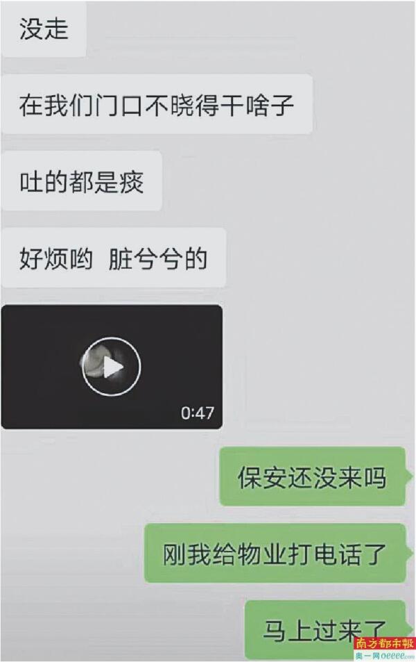 南都此前报道,据王女士描述,2024年6月9日13时许,她看到一名陌生女人站在邻居家门口,“我当时以为她是邻居客人,或者是没带钥匙,我看了她一眼,她也看了我一眼,没说话,我就把门关上了”,后来陌生女人在门外咳嗽、吐口水,“感觉很异样”。