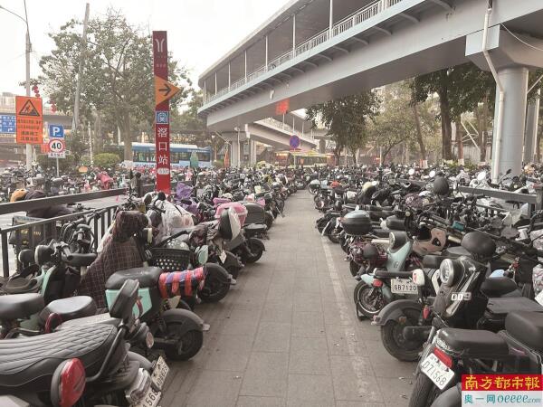 广州滘口地铁站外停满了电动自行车。南都资料图