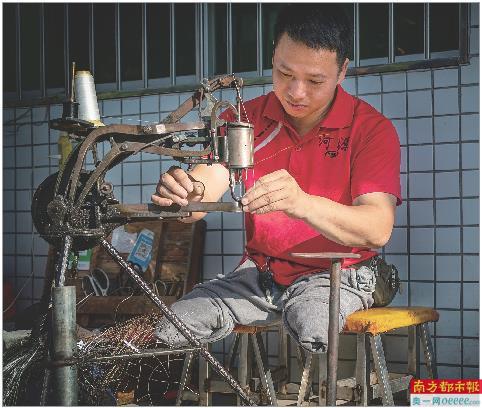 黄华泉在补鞋。