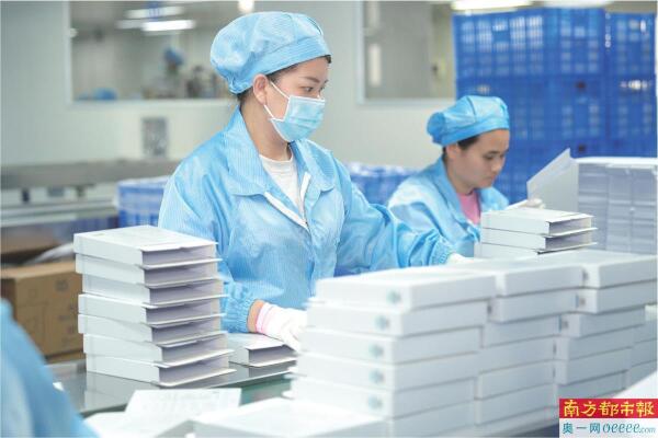 膜法世家生产车间内,工作人员正在进行产品包装。