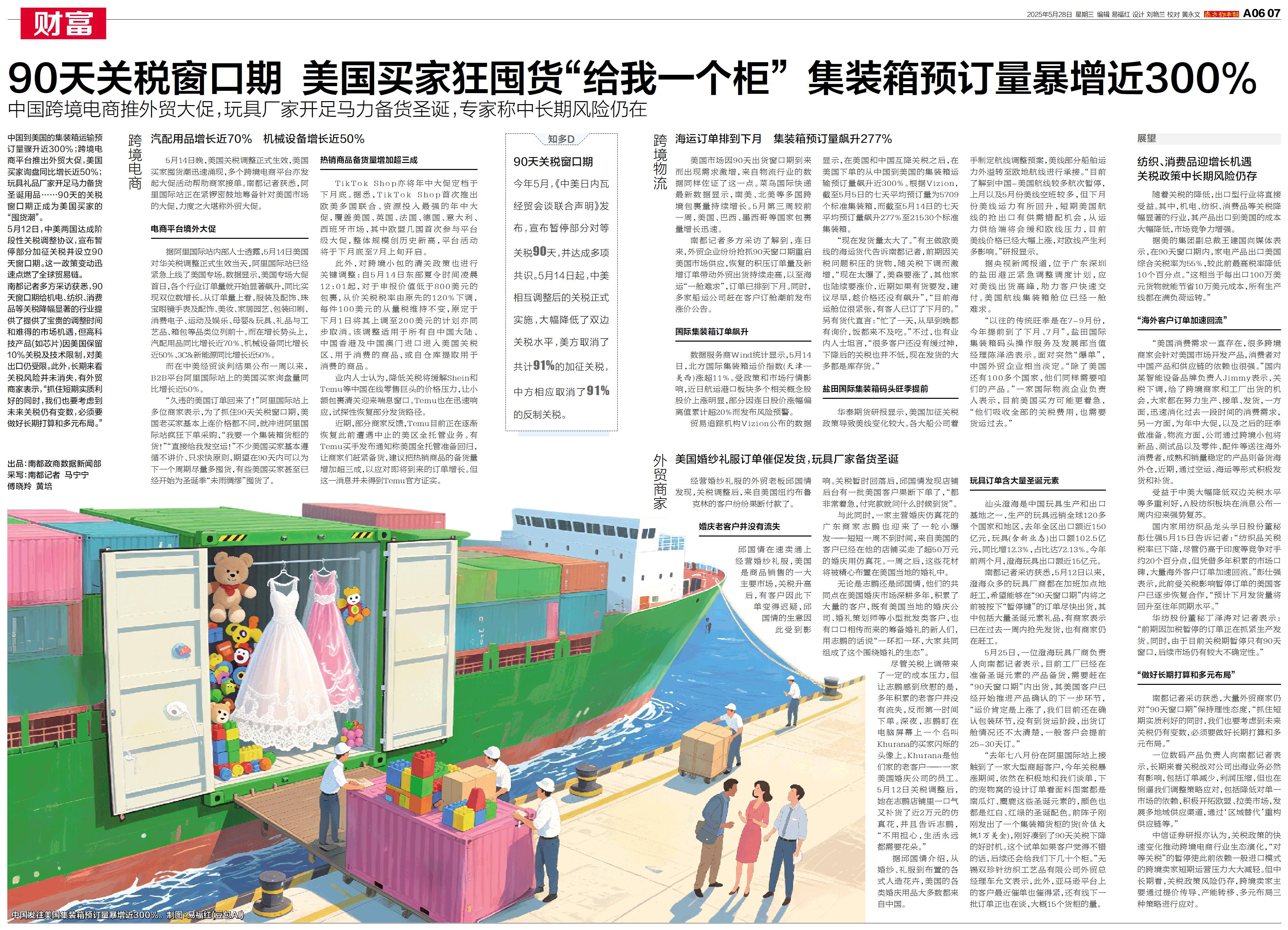 90天关税窗口期 美国买家狂囤货“给我一个柜” 集装箱预订量暴增近300%