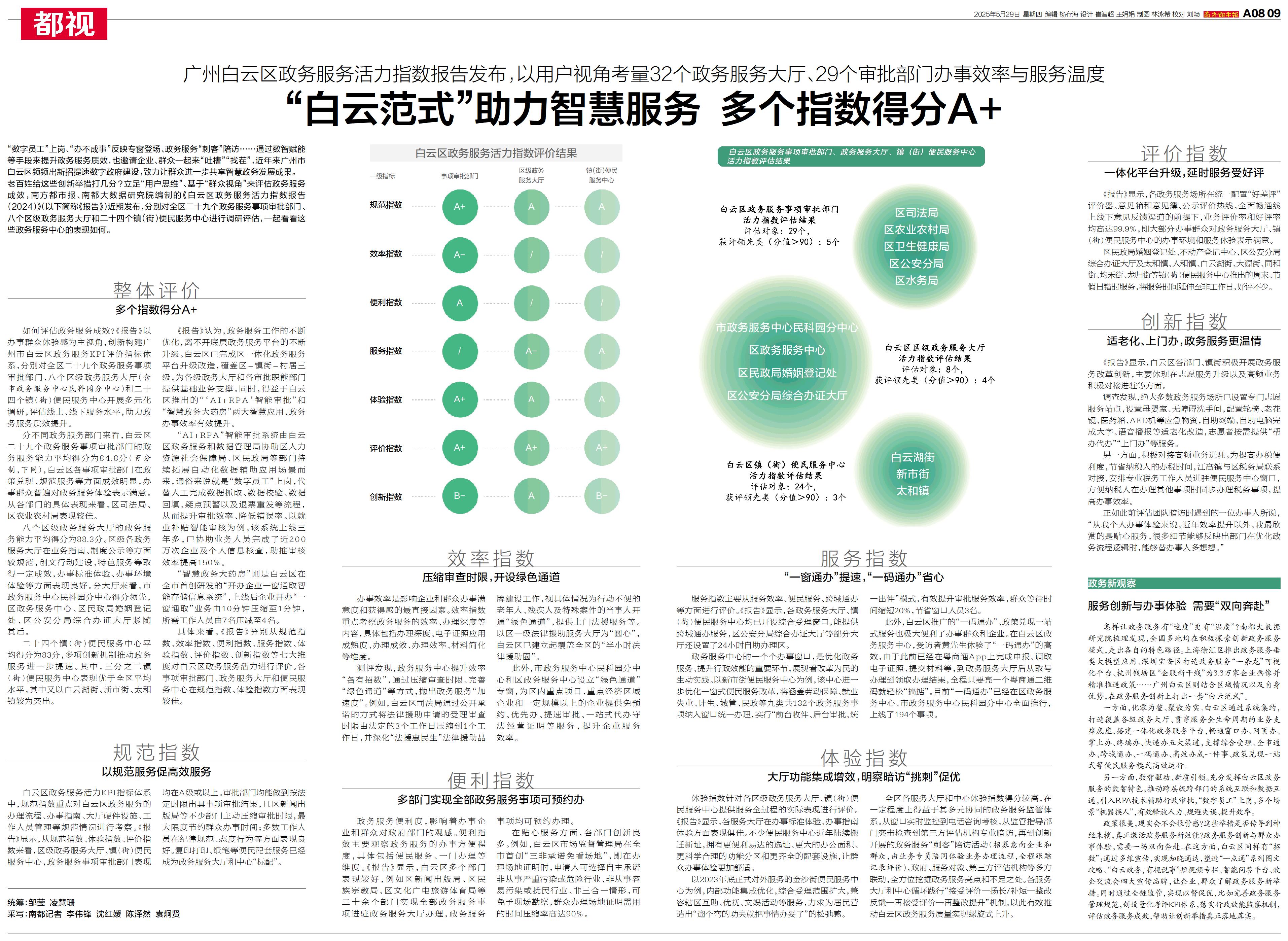 怎样让政务服务有“速度”更有“温度”?南都大数据研究院梳理发现,全国多地均在积极探索创新政务服务模式,走出各自的特色路径。上海徐汇区推出政务服务垂类大模型应用、深圳宝安区打造政务服务“一条龙”可视化平台、杭州钱塘区“企服新干线”为3.3万家企业画像并精准推送政策……广州白云区则结合区域情况以及自身优势,在政务服务创新上打出一套“白云范式”。