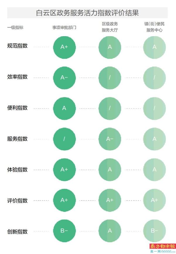 具体来看,《报告》分别从规范指数、效率指数、便利指数、服务指数、体验指数、评价指数、创新指数等七大维度对白云区政务服务活力进行评价。各事项审批部门、政务服务大厅和便民服务中心在规范指数、体验指数方面表现较佳。