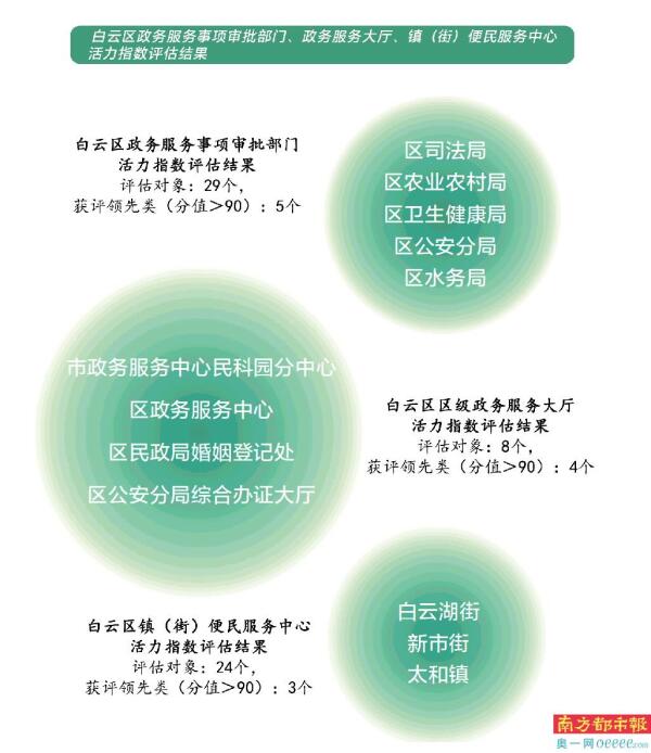 老百姓给这些创新举措打几分?立足“用户思维”、基于“群众视角”来评估政务服务成效,南方都市报、南都大数据研究院编制的《白云区政务服务活力指数报告(2024)》(以下简称《报告》)近期发布,分别对全区二十九个政务服务事项审批部门、八个区级政务服务大厅和二十四个镇(街)便民服务中心进行调研评估,一起看看这些政务服务中心的表现如何。