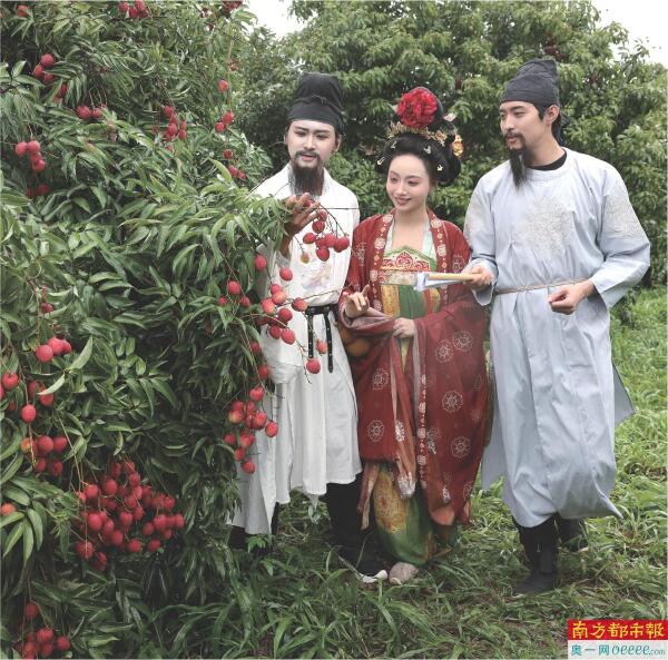 昨日,“百剧千行”共创计划发布暨2025中国(增城)仙进奉荔枝合作大会在广州增城举行,首场产剧结合活动为增城仙进奉荔枝打造文化IP。活动当天,“杨贵妃和她的朋友们COSPLAY游园会”走进增城太平村麻车新果场。 南都记者 黎湛均 张志韬 摄