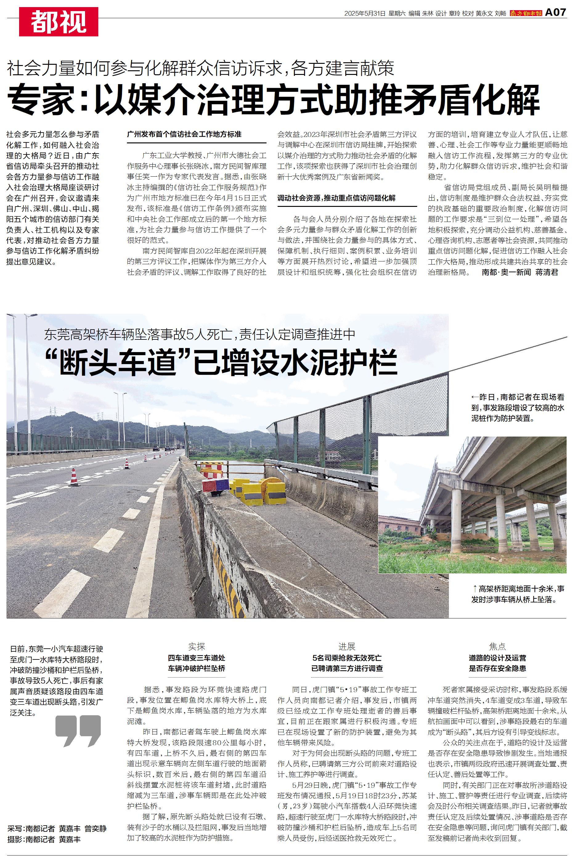 日前,东莞一小汽车超速行驶至虎门一水库特大桥路段时,冲破防撞沙桶和护栏后坠桥,事故导致5人死亡,事后有家属声音质疑该路段由四车道变三车道出现断头路,引发广泛关注。