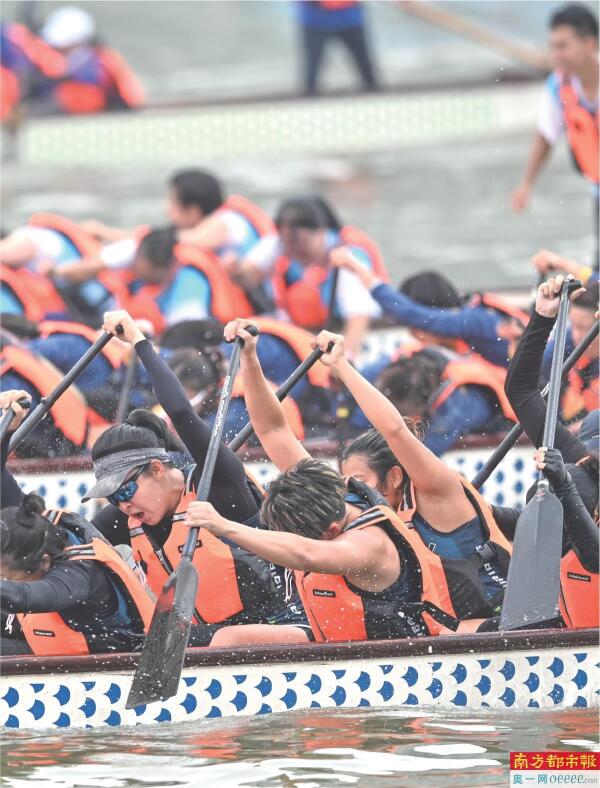 6月1日,2025广州国际龙舟邀请赛在中大北门广场至广州大桥珠江河段举行,女桨手们奋力争先。 南都、N视频记者 黎湛均 徐杰 摄