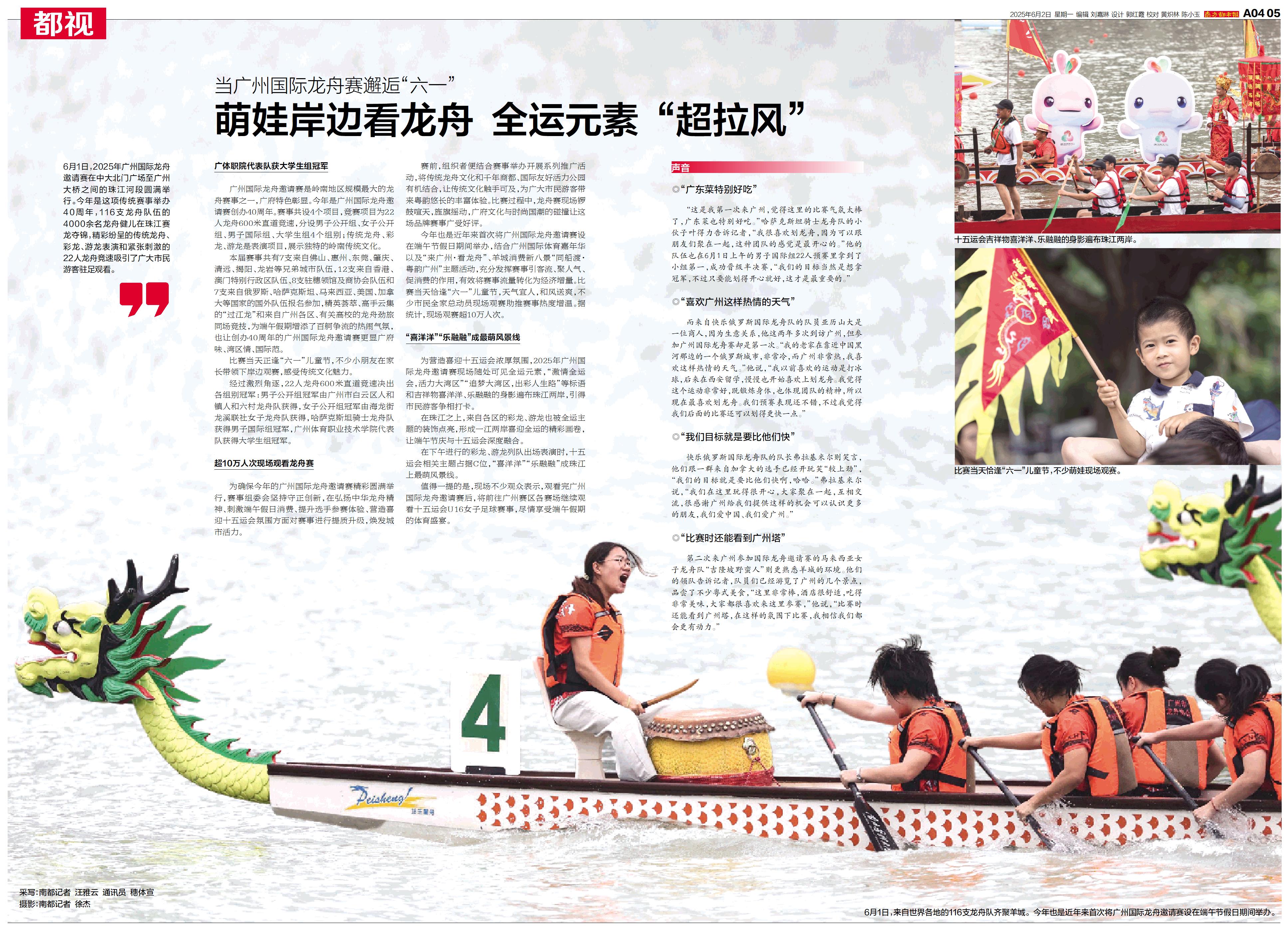 6月1日,2025年广州国际龙舟邀请赛在中大北门广场至广州大桥之间的珠江河段圆满举行。