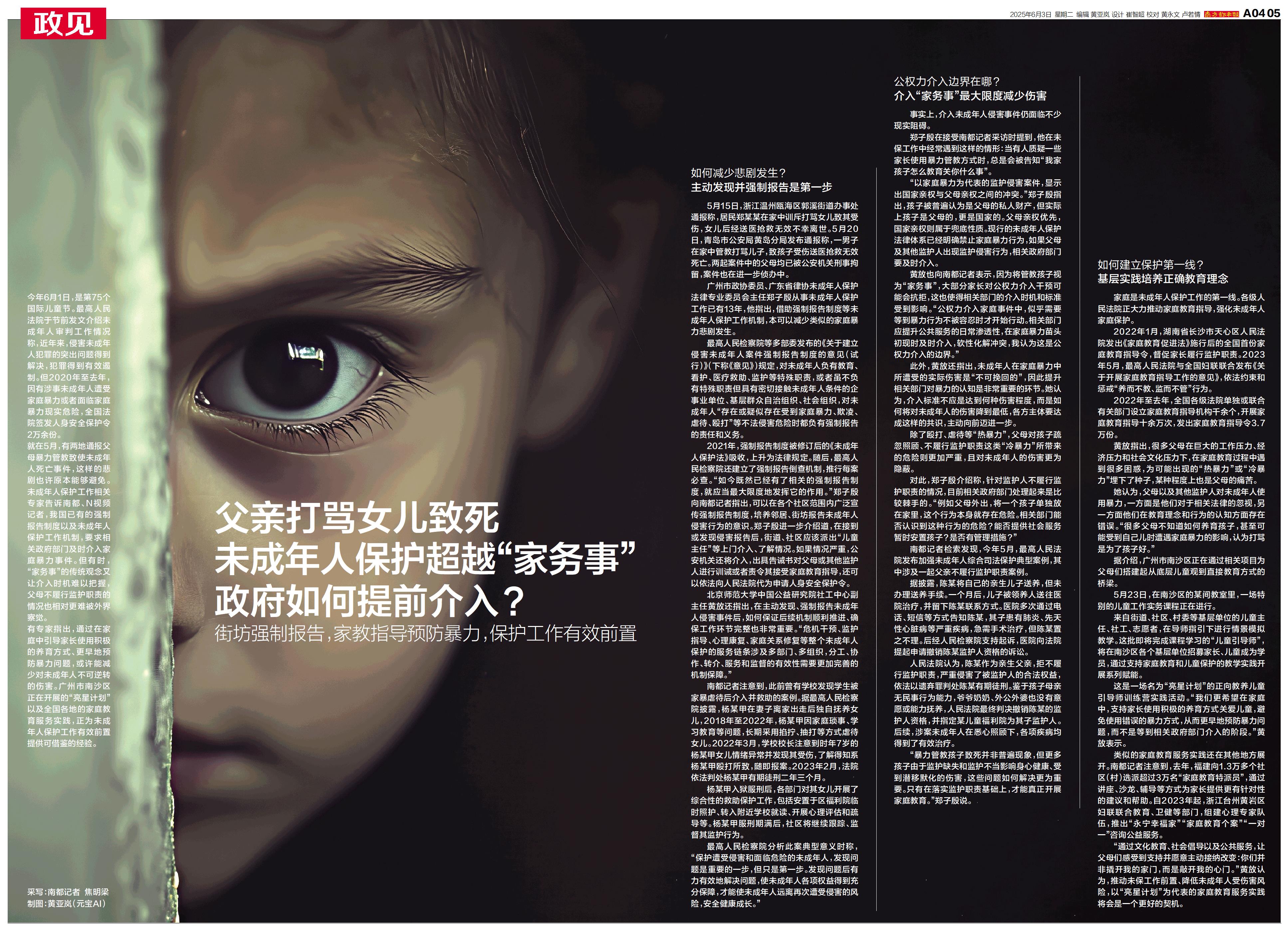父亲打骂女儿致死 未成年人保护超越“家务事” 政府如何提前介入?