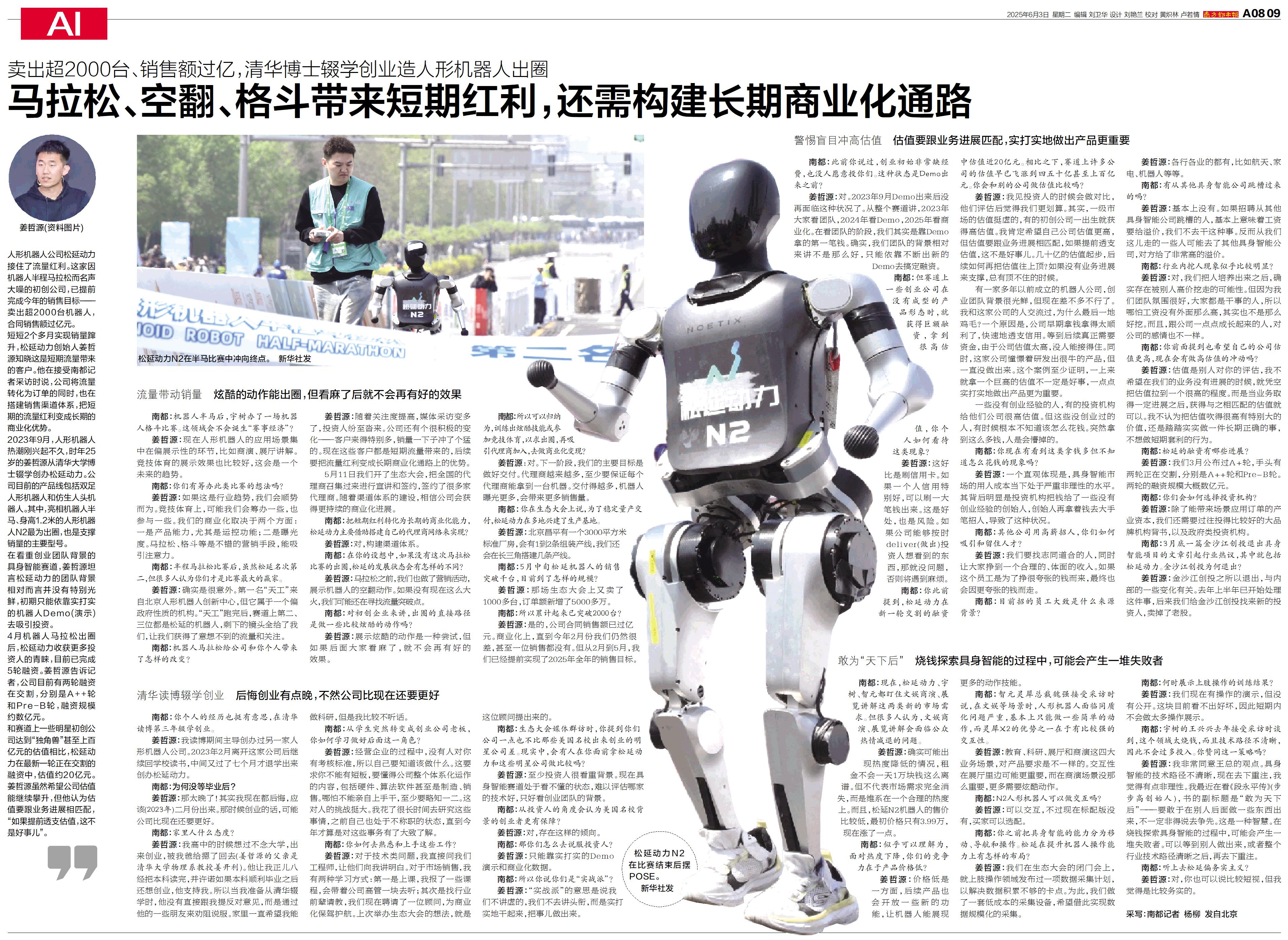 人形机器人公司松延动力接住了流量红利。这家因机器人半程马拉松而名声大噪的初创公司,已提前完成今年的销售目标——卖出超2000台机器人,合同销售额过亿元。
