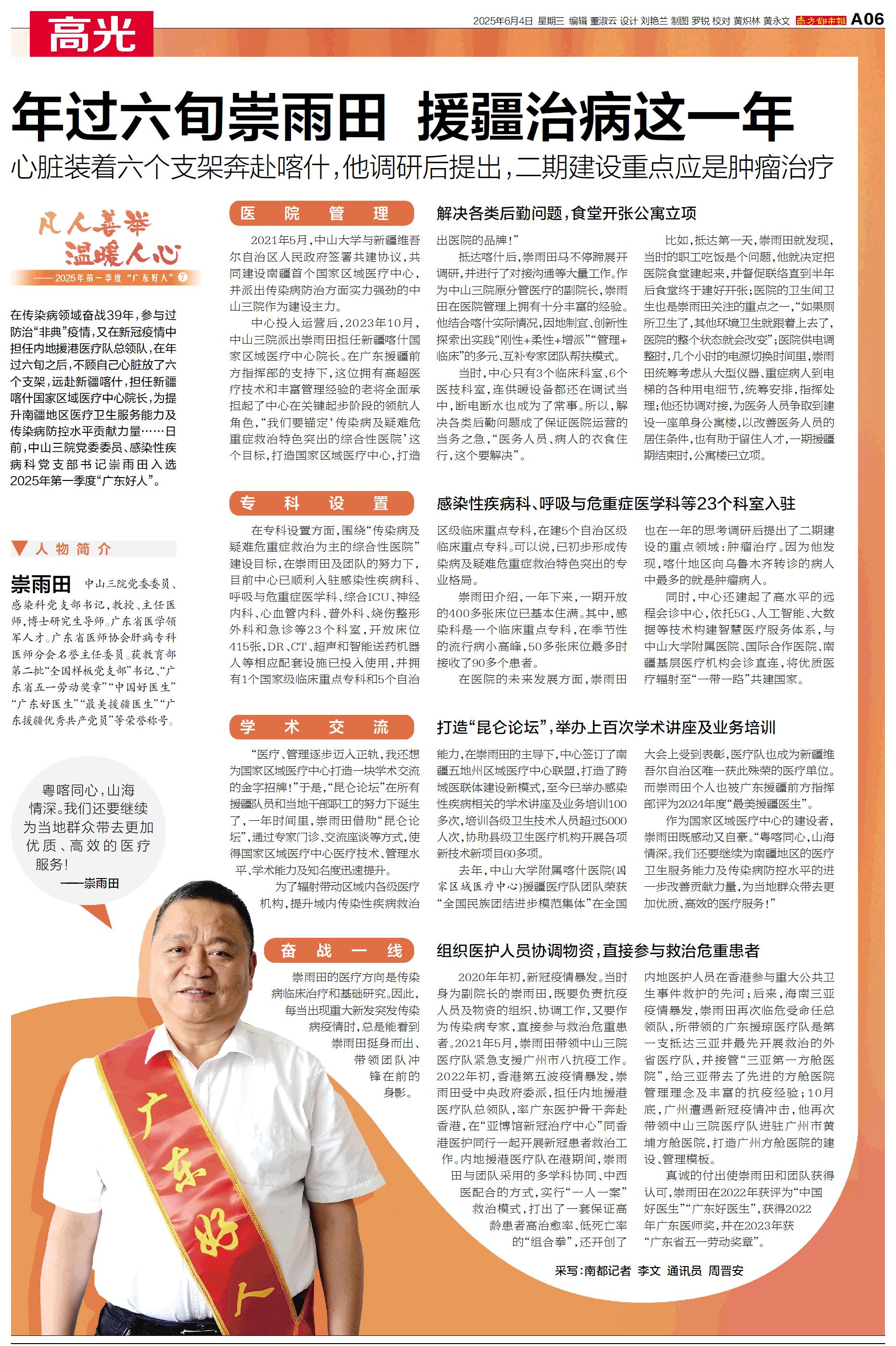 日前,中山三院党委委员、感染性疾病科党支部书记崇雨田入选2025年第一季度“广东好人”。
