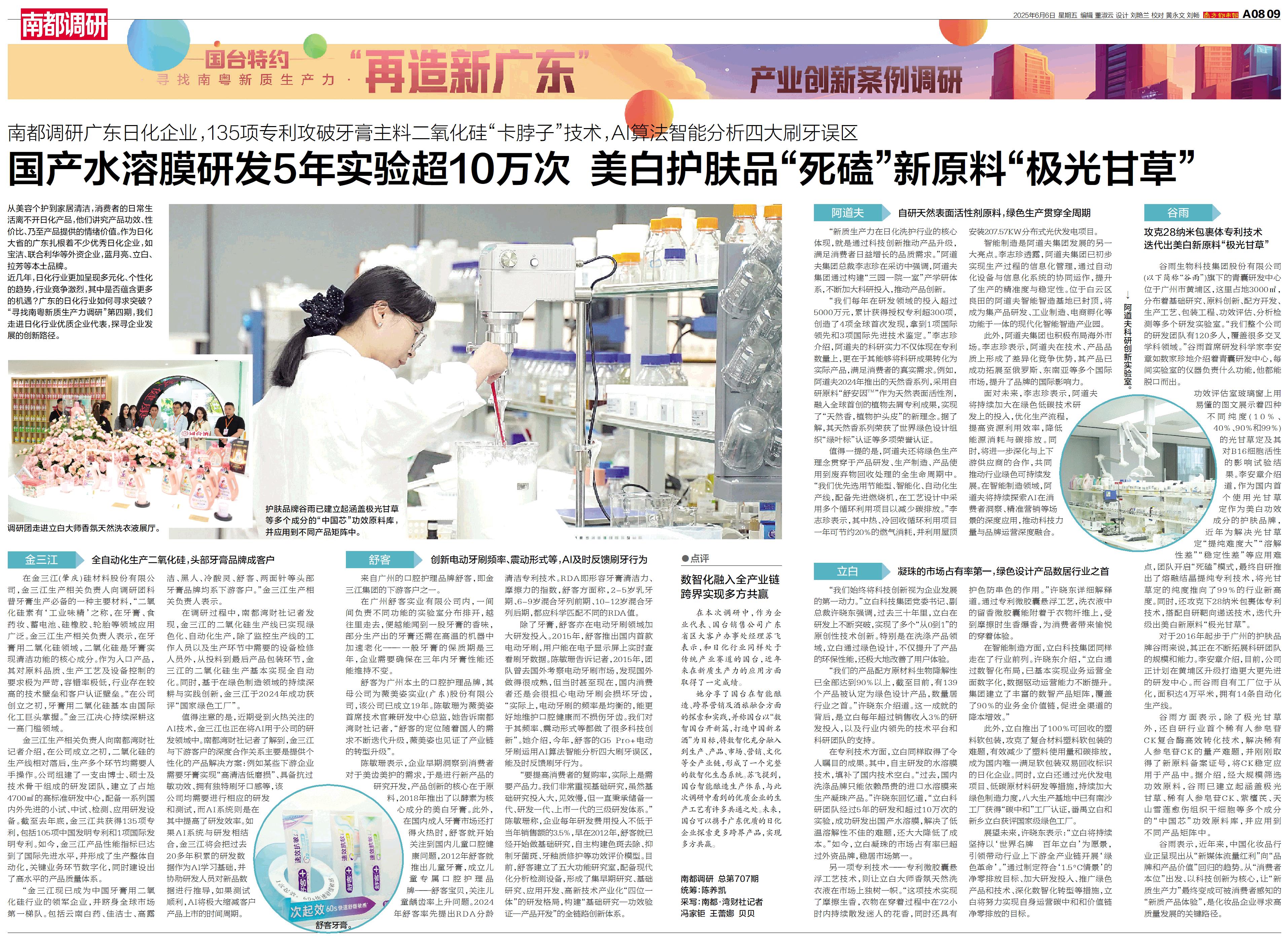 近几年,日化行业更加呈现多元化、个性化的趋势,行业竞争激烈,其中是否蕴含更多的机遇?广东的日化行业如何寻求突破?“寻找南粤新质生产力调研”第四期,我们走进日化行业优质企业代表,探寻企业发展的创新路径。